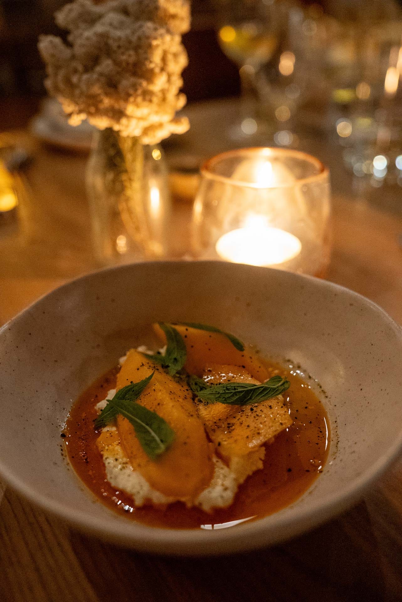 Gunyah Restaurant, which can be found in the camp, follows in the same architectural vein, and as you’d expect, a strong focus on seasonal produce and local ingredients flows through the menu.