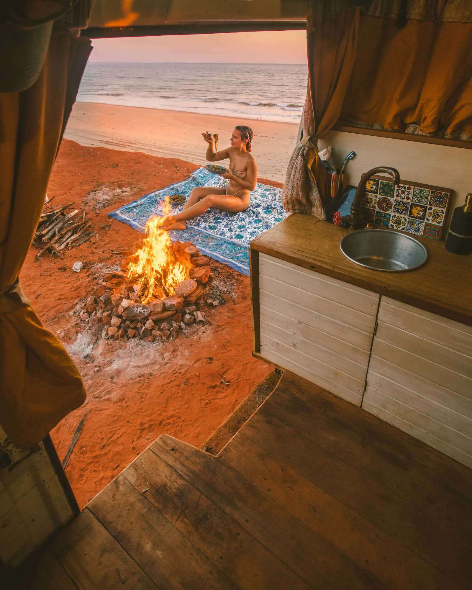Cleo: We’ve actually improved a lot with our cooking on the road (van recipe book to come), and have started to mix it up every other night to keep it interesting. Our ‘go-to meal’ would probably be a good risotto or a simple linguine with mushrooms, carrots and a red sauce. Both of these are super cheap as we chuck in whatever veggies are on special — and rice and pasta are as cheap as chips.
