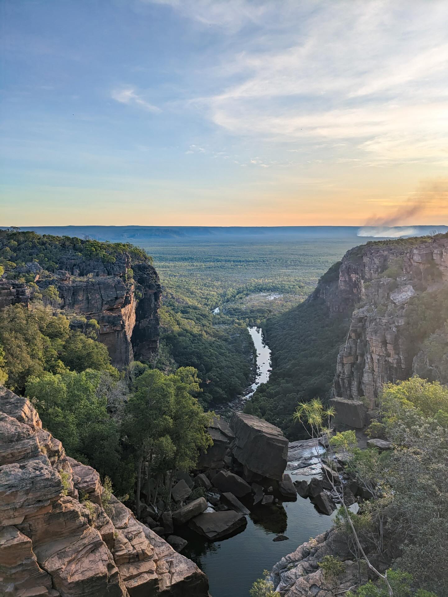 On each visit I struggle to comprehend the enormity of the landscape surrounding me. The up-to 300m high Arnhem Land Escarpment erupts out of the flush savannah below, and for around 500km, stands mighty along Kakadu’s eastern edge. This sandstone escarpment is its own brutal wilderness, and at Jim Jim and Twin Falls, we’re lucky enough to witness some of its most mind-blowing details.