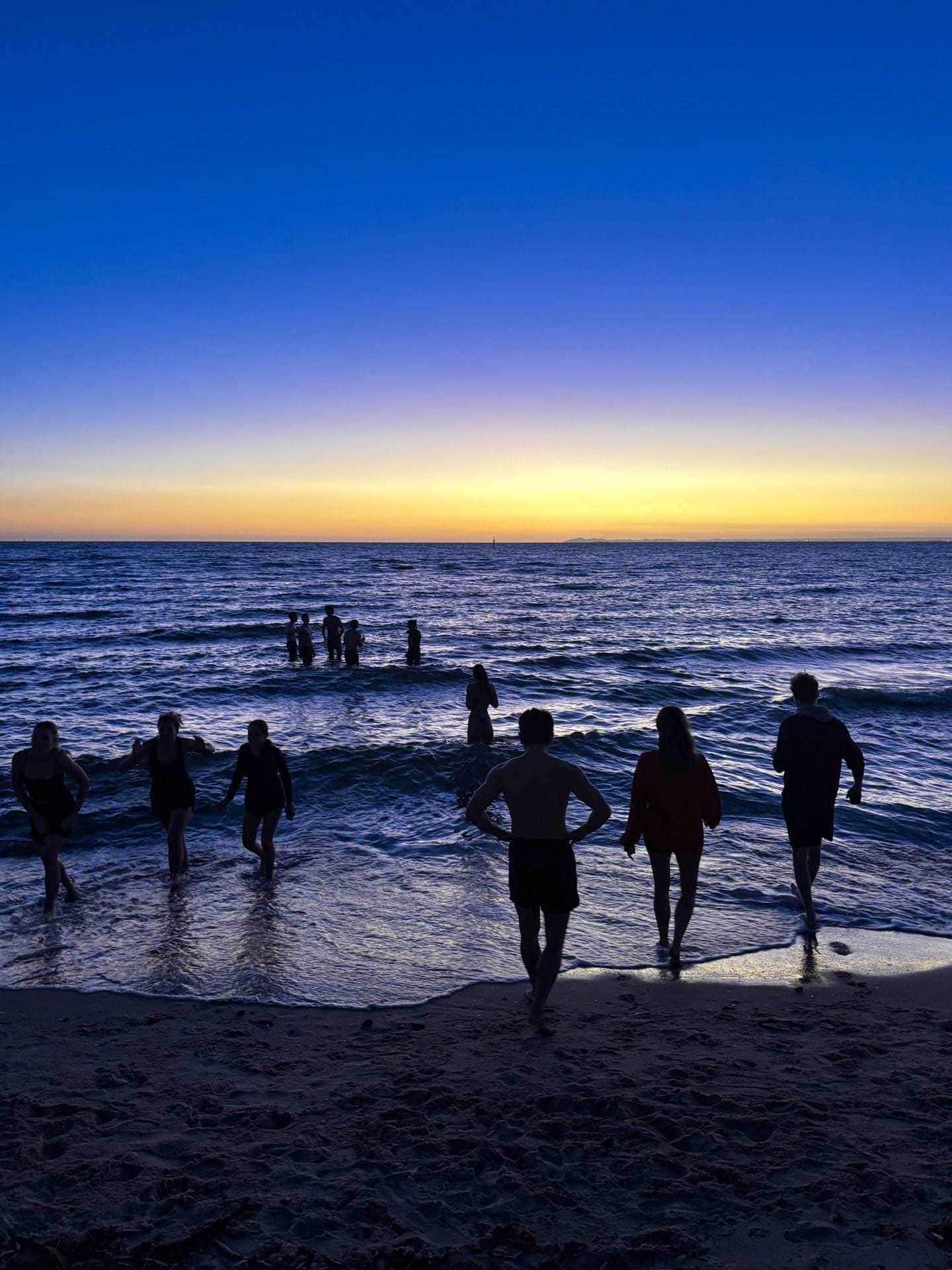 Sunrise swims with my housemates – pretending we weren’t absolutely freezing