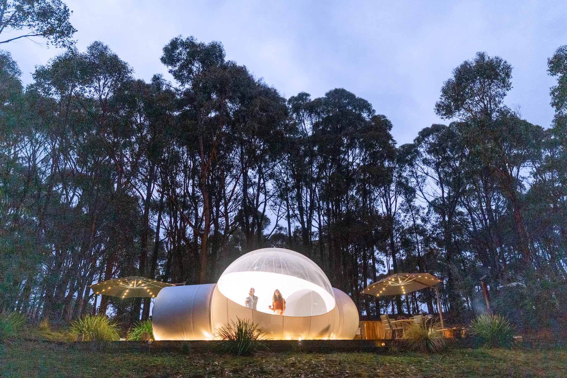 Ok, so I’ve never stayed in a bubble tent before but let me tell you, it’s at the top of my list. The glamping setup is in the middle of bushland, five minutes from Daylesford. But the main feature is that the tent has a clear roof so you can stargaze all night from bed. Oh and they’ve also got an orchard, veggie patch, bees, and some friendly alpacas and chickens in case you get lonely.