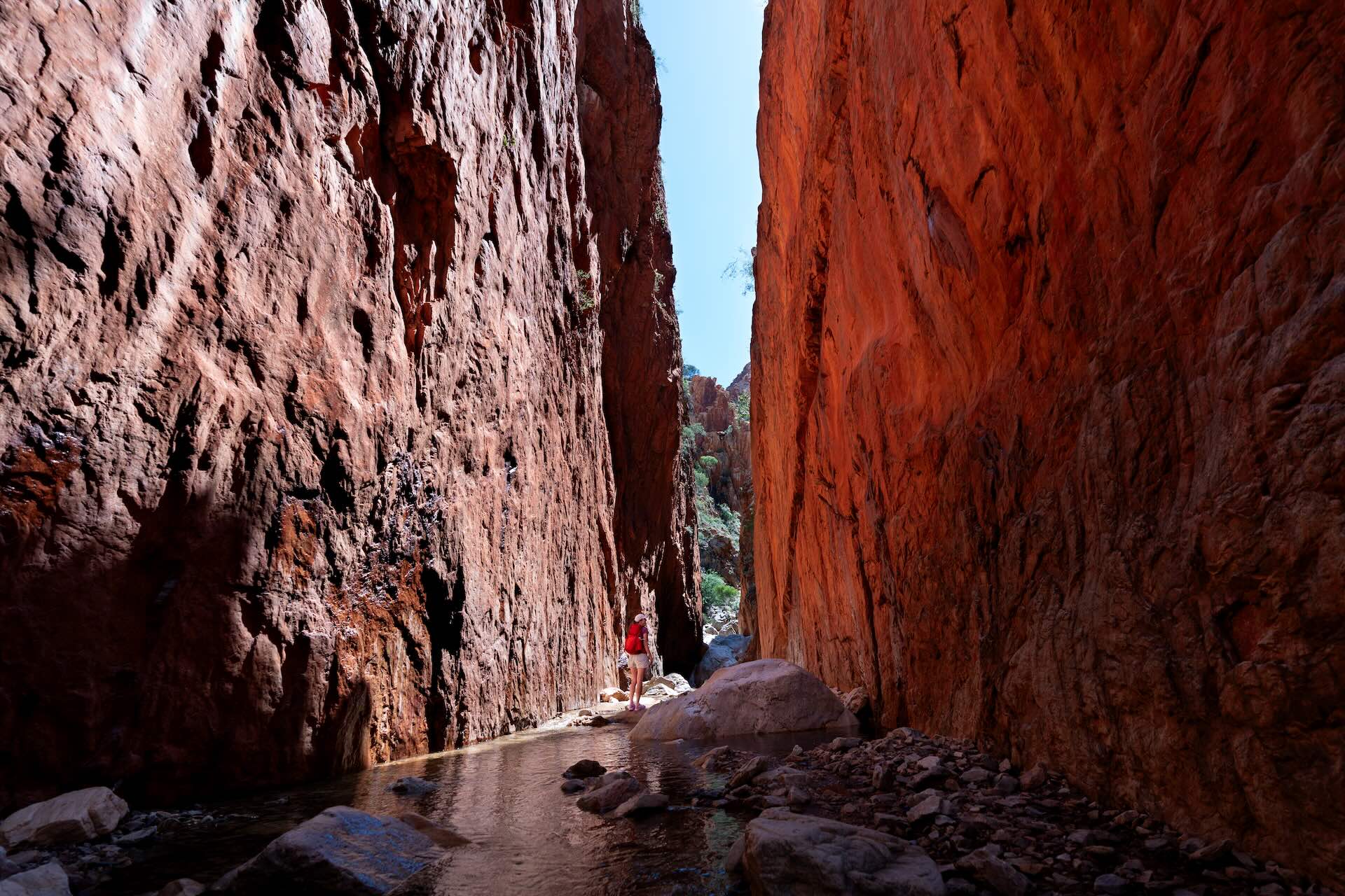The last 4km of the drive to the trailhead are along a very rough 4WD track involving water crossings, sand, and rocks. Take a 4WD and drive slow! If you don’t have one of your own, there are plenty of 4WDs for rent! Chat to the team at Alice Springs Visitor Info Centre and they’ll help you find the best car for your trip.