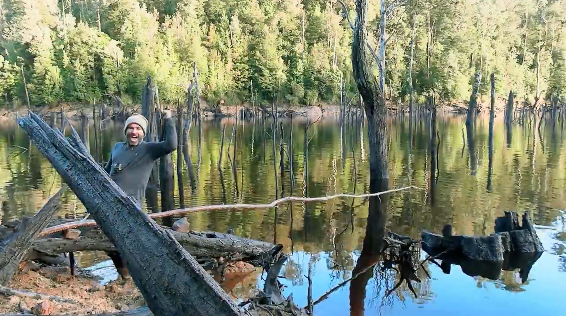 The little caption reads ‘Sharp trees lie just below the surface’ which I thought was pretty funny. That was less fact and more narration SBS. The ante upped a fair bit with some Hans Zimmer Tier ominous music as Mike began to paddle away…for…two seconds. God damn that sunk quickly.
