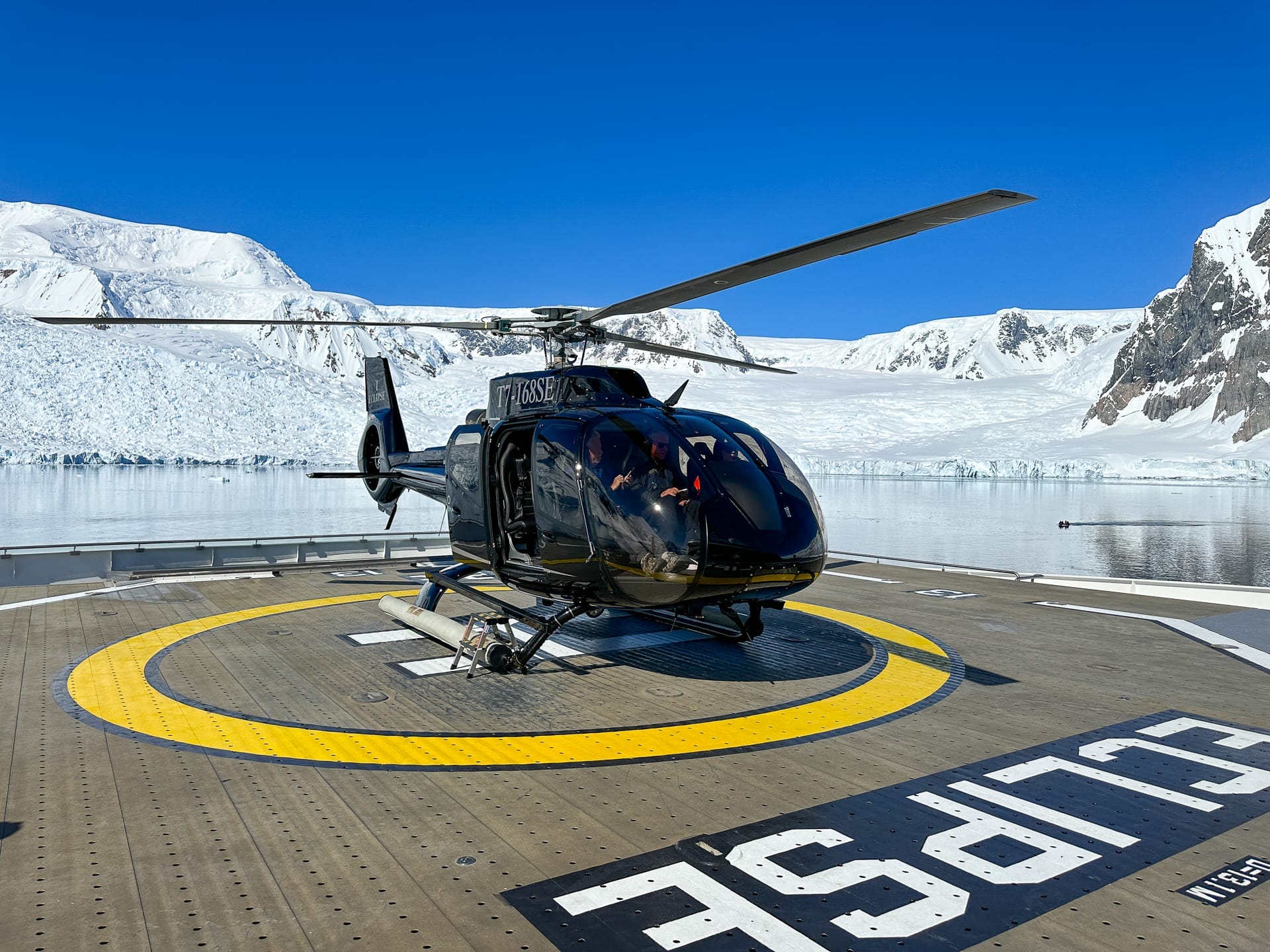 Once we’d seen Antarctica from the land and sea, it was time to take it all in from the sky, during a helicopter flightseeing ride over Charlotte Bay.