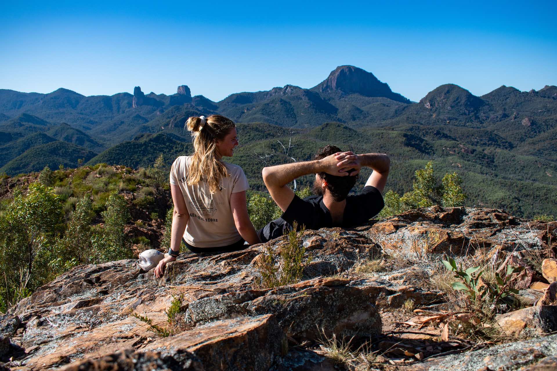 At the summit we found astounding 360-degree views of the whole Warrumbungles and the cast-flat plains to the south. It was a magical spot to have a snack and soak up the spectacular scenery.