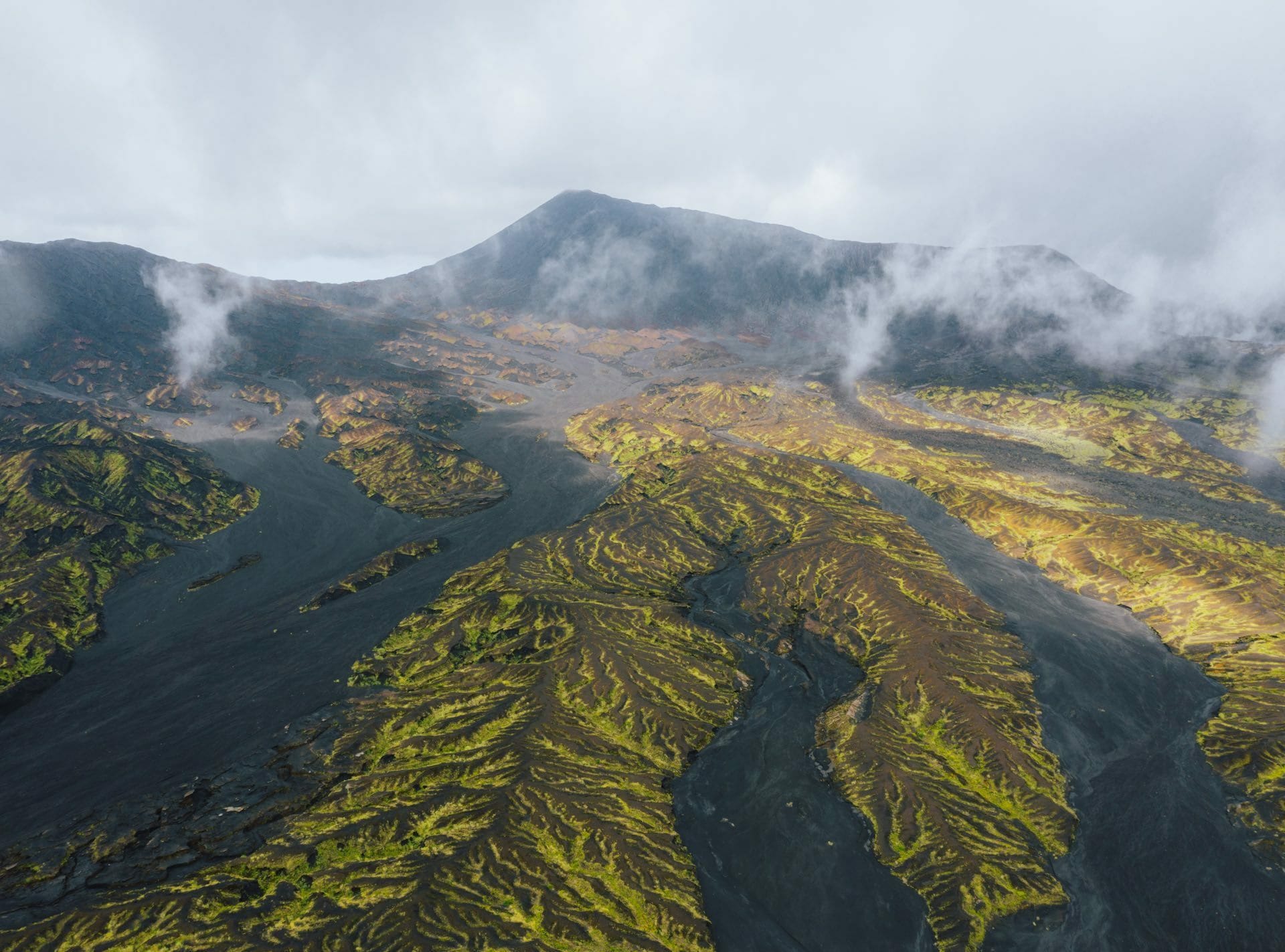 The entire view on the way up to the Benbow crater is insane. The old lava streams run like veins from the mouth of the volcano, all the way into the jungle below. There’s no vegetation at all, so you’re exposed to the elements in a big way.