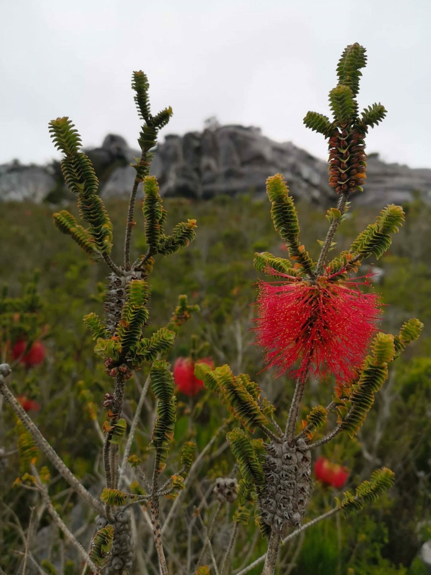 The walk is constant 20% grade uphill and as you gradually climb, the trees thin and give way to even more spectacular views of the surrounding peaks and bushland. The path is dotted with stunning endemic wildflowers and there are plenty of perfect spots to stop for a snack and admire the view