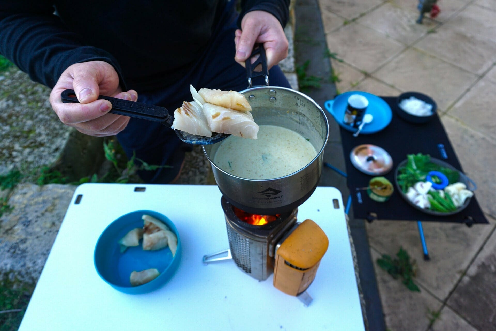 We decided to test out the BioLite CampStove2 for this meal. This particular piece of gear is our first wood-fired stove and we were very keen on having something that didn’t need gas as fuel. We love it, but it did have some downsides.