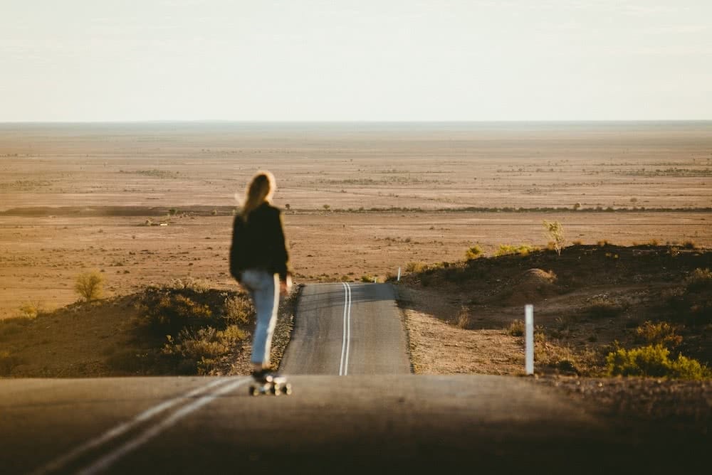 Catching the last of the sun we discovered what would be our favourite place in Broken Hill; Mundi Mundi Plains lookout. We were given the inside tip to head to this incredible landscape at sunset by friendly locals. With a perfect road leading off into the horizon and skateboards in the van, could you blame us?