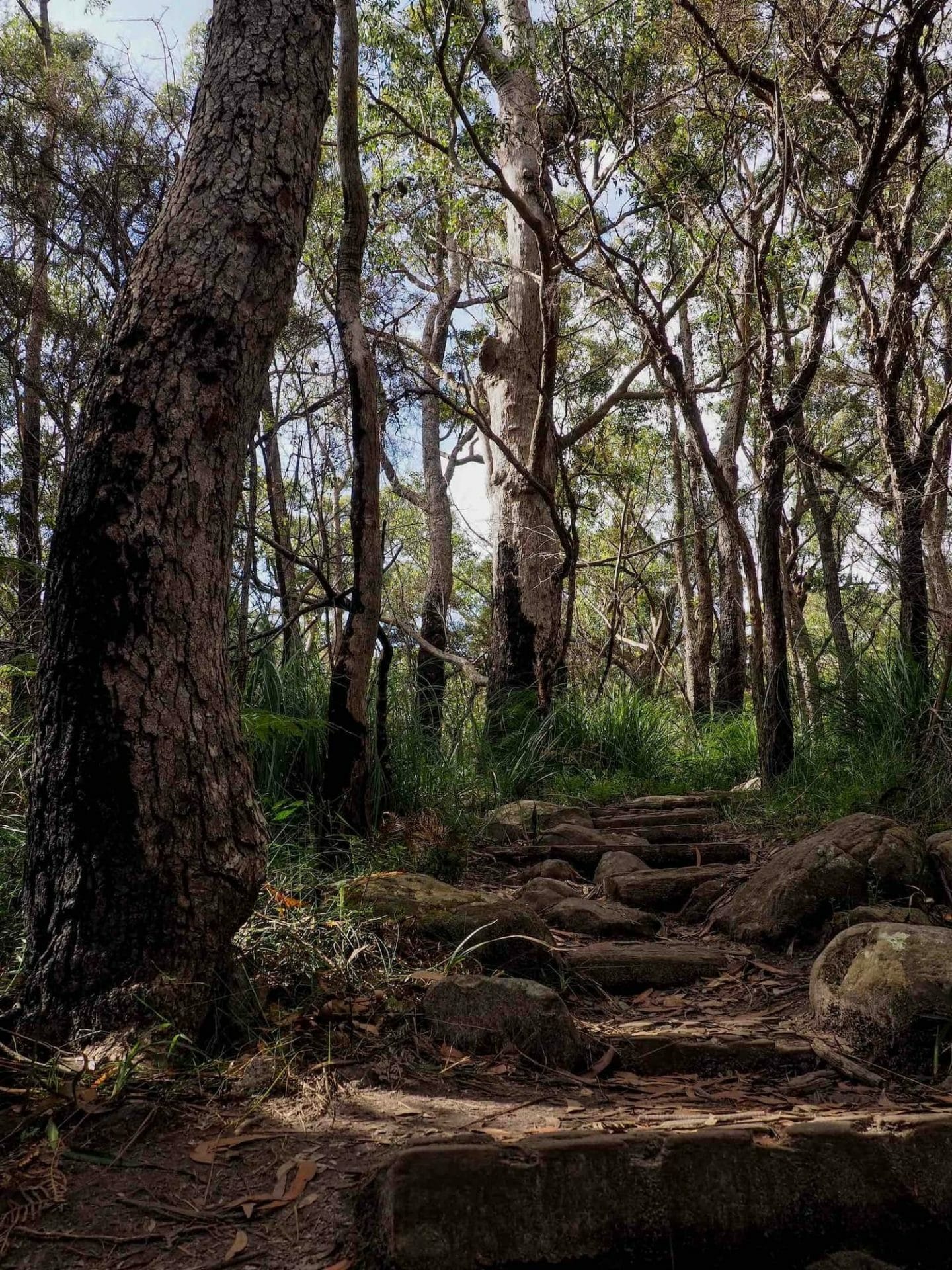 After about 20 minutes, the trail became progressively steeper and we had to navigate large roots and boulders to make it to the first lookout. A flat, stone platform made for the perfect rest stop with views of the Koori coastline to the east and the ‘nipple’ to the west.