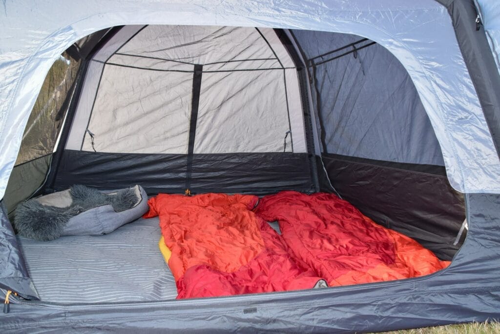 My first thought was that a large tent like the Dometic Santorini FTK would be more complicated to set up. Turns out that’s not true for these inflatable tents! Similar to the other two tents, The Dometic Santorini FTK was set up and ready for use in less than ten minutes after arriving at our campsite in Springfield.