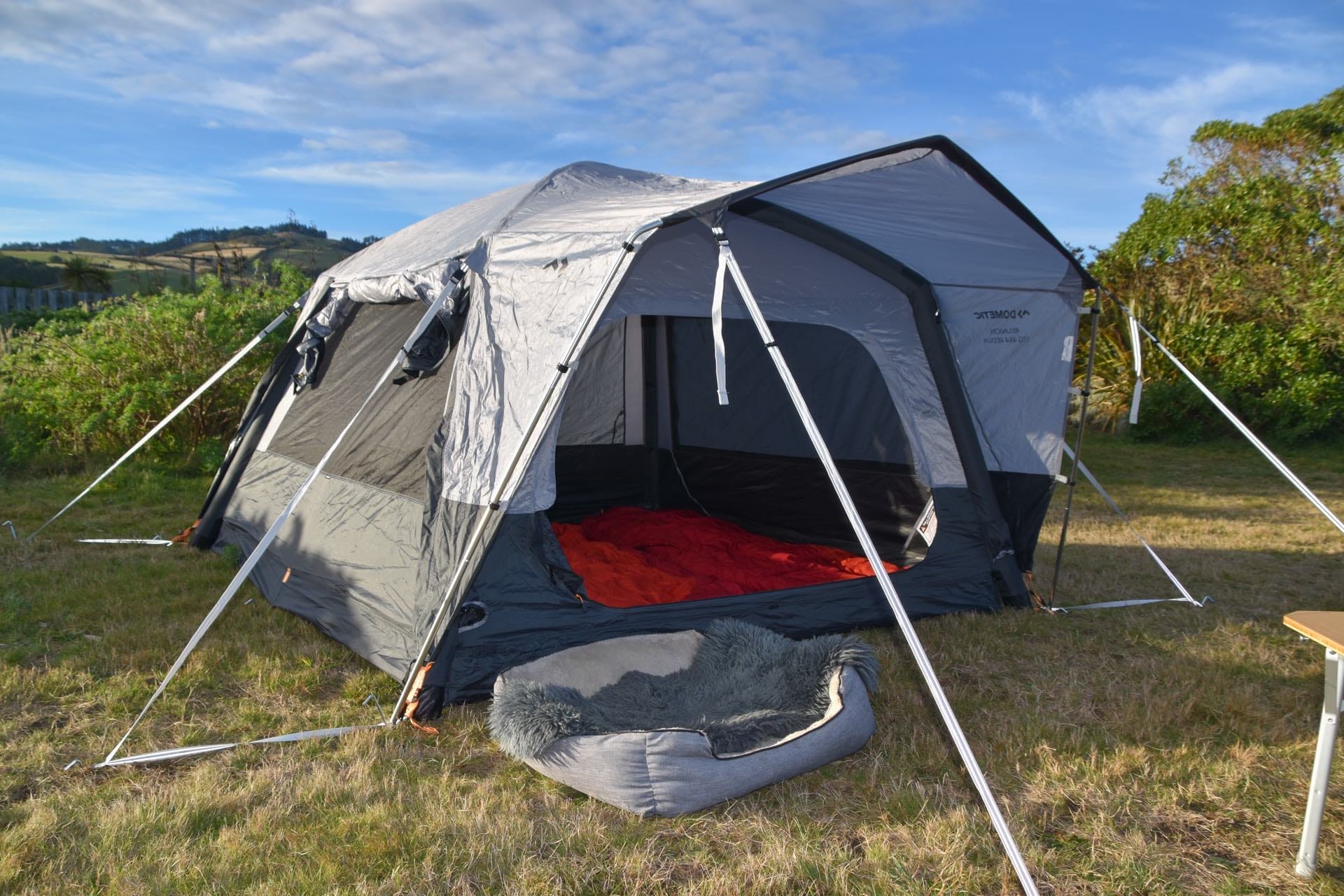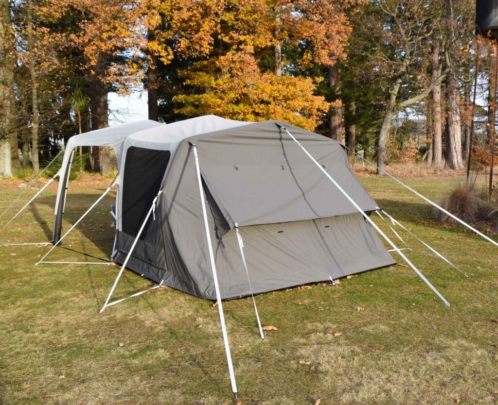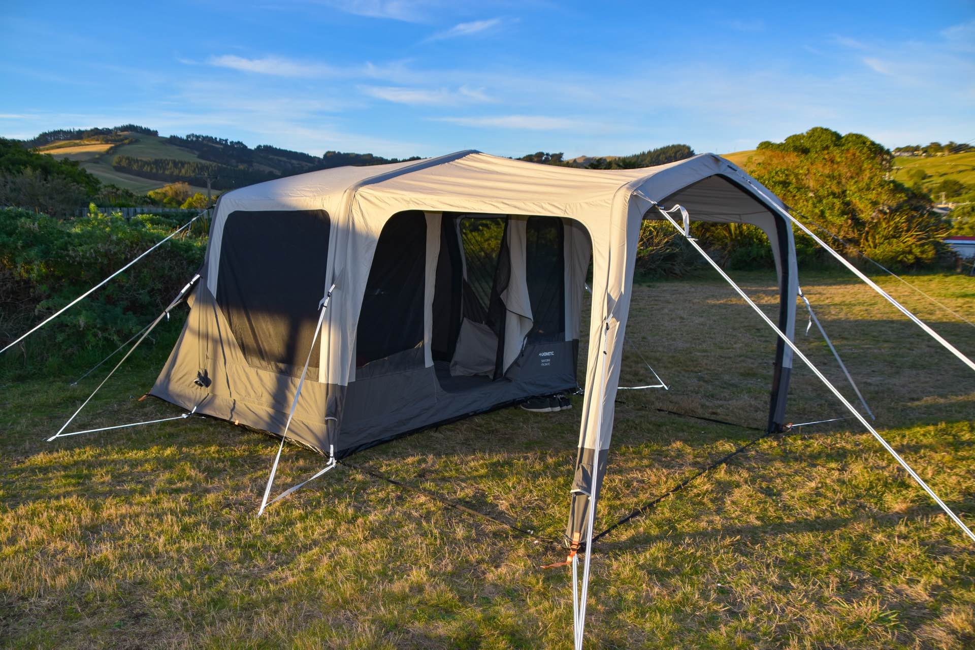 Due to our proximity to the Kā Tiritiri o te Moana/Southern Alps, we had all sorts of weather during our night in the Dometic Santorini FTK, including gale-force winds. Initially, it made me nervous to have such a large tent up in rough conditions, but the Dometic Santorini FTK handled the gusts like a pro. I guess that’s the biggest benefit of this inflatable tent series, no more broken tent poles!