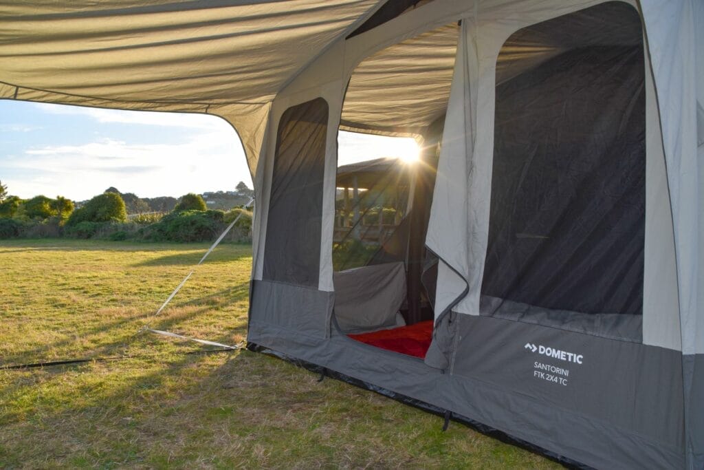 The biggest advantage of the Dometic Santorini FTK has to be the integrated canopy. What a great way to be able to sit outside while being protected from both sun and (light) rain! It’s a layout that definitely suits the hotter Australian climates better than the horizontal rain we sometimes get in New Zealand though.