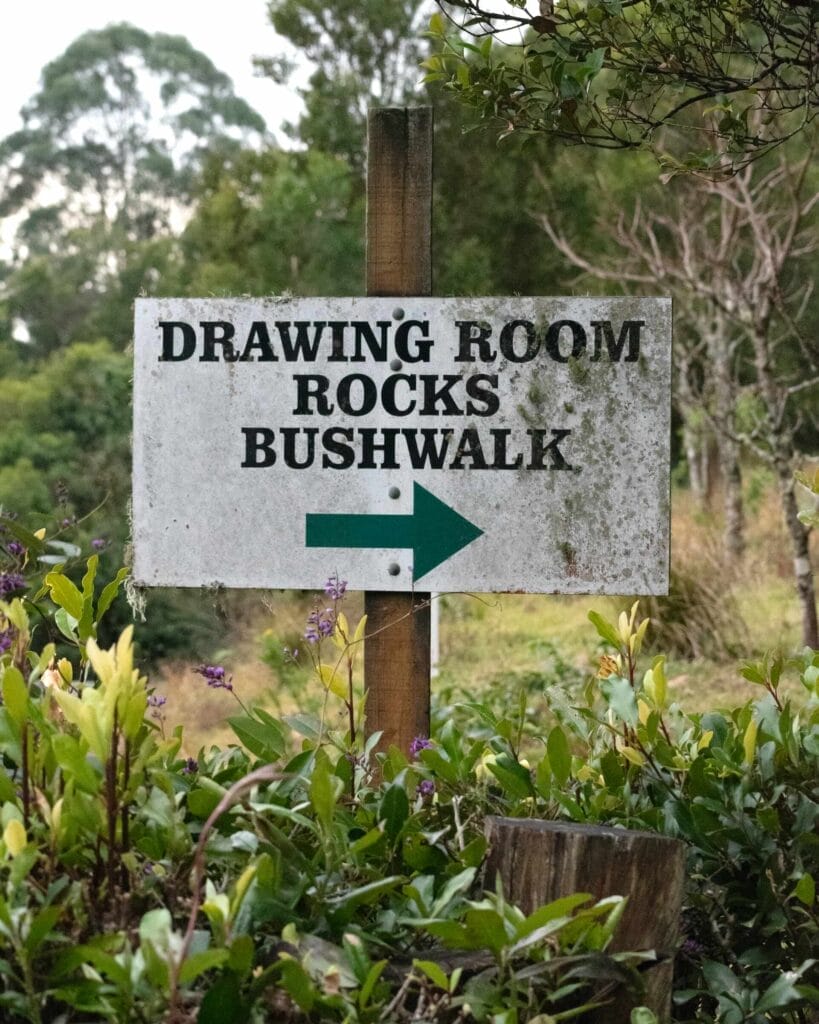 The walk to the Drawing Room Rocks lookout is around 2.8km return and takes around 1-1.5 hours total.