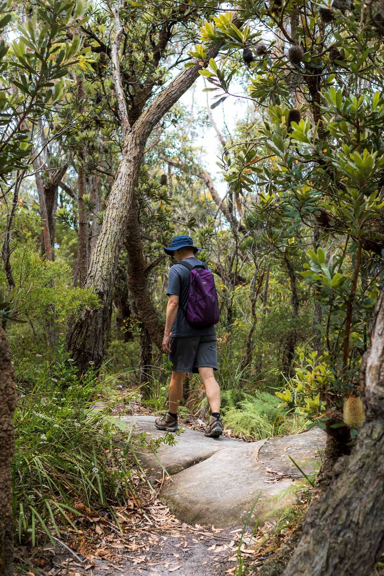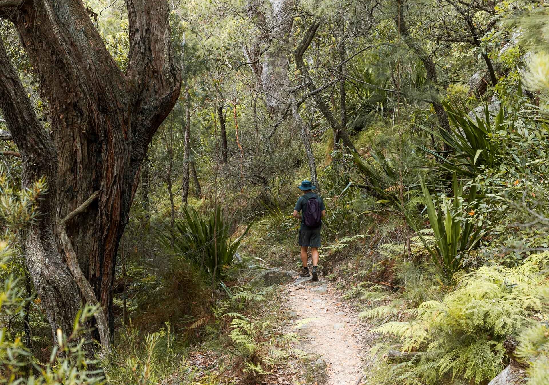 We traverse through bark-shedding gum trees, rainforests, moss-covered boulders, dense she-oaks, and my favourite, narrow, winding trails framed by walls of vivid ferns.