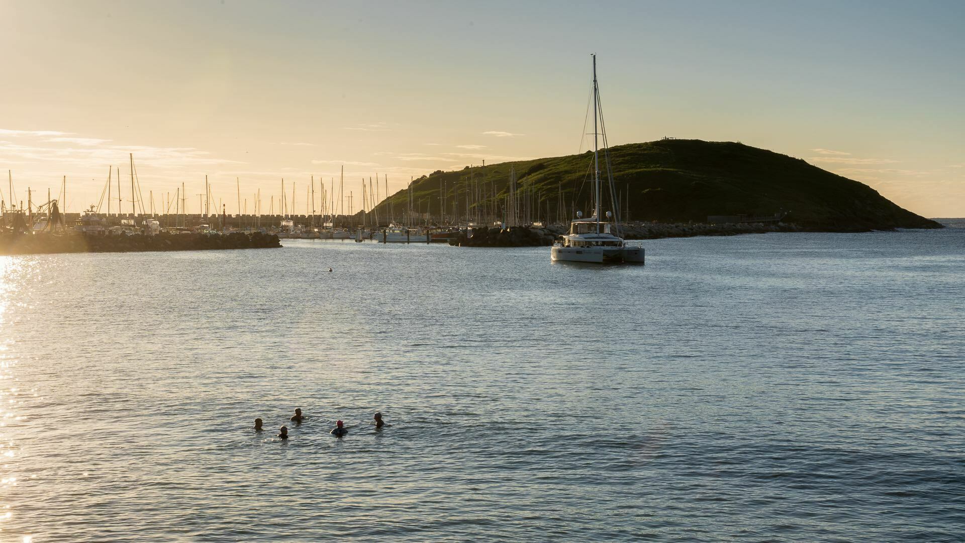 From my spot at the end of the jetty as I watched the sun slowly emerge from behind Muttonbird Island, it soon became apparent that several of the locals had their own motivations for rising early: they ran, walked their dogs, snuck in a quick session with their PT before work, even swam and paddled in the inky blue depths of the harbour.