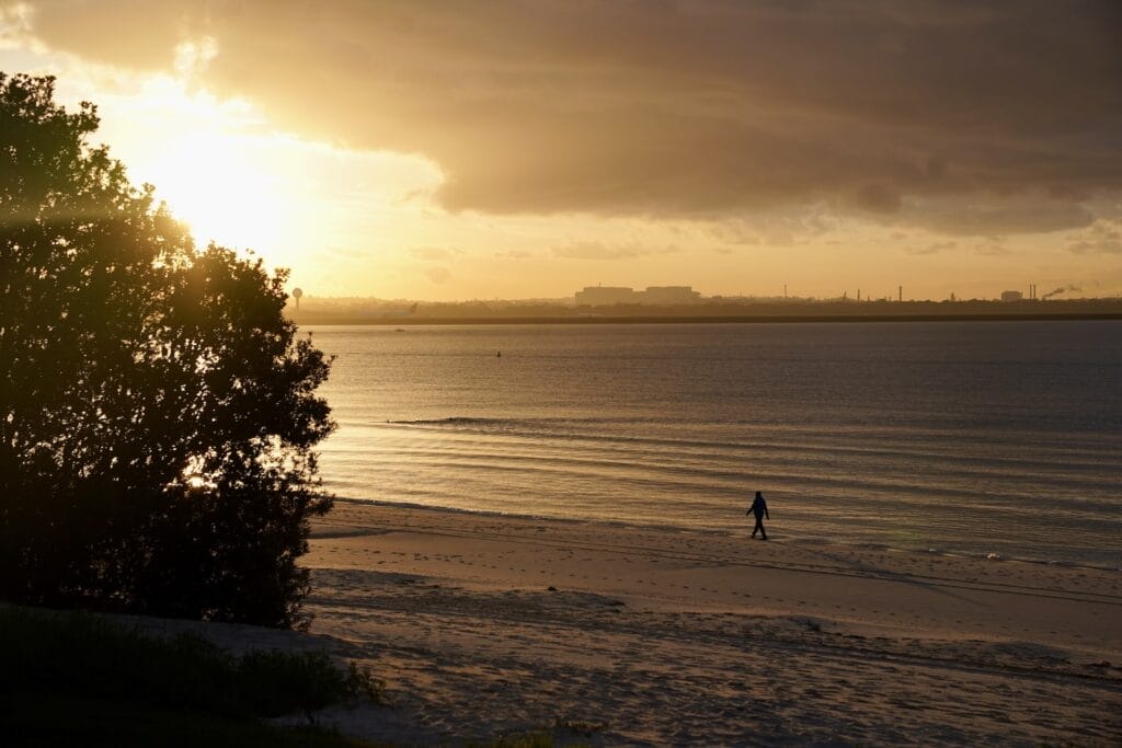 The sun came up as I passed the international airport, casting an impressive orange glow across Botany Bay. I watched the engines roar during each take off, and felt the usual pangs of homesickness, thinking about the destinations of each plane.