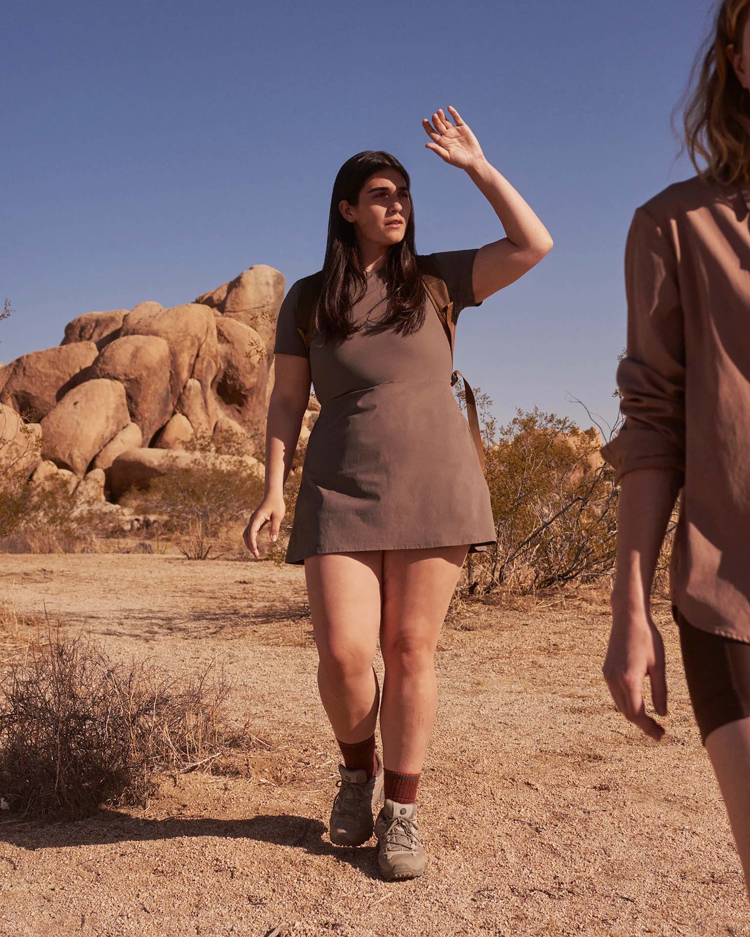 Whether it’s combating the cold with thermals, braving the rain and throwing on shell pants, or navigating overgrown trails with a pair of gaiters, the simplicity of layering and delayering in a dress is unmatched.