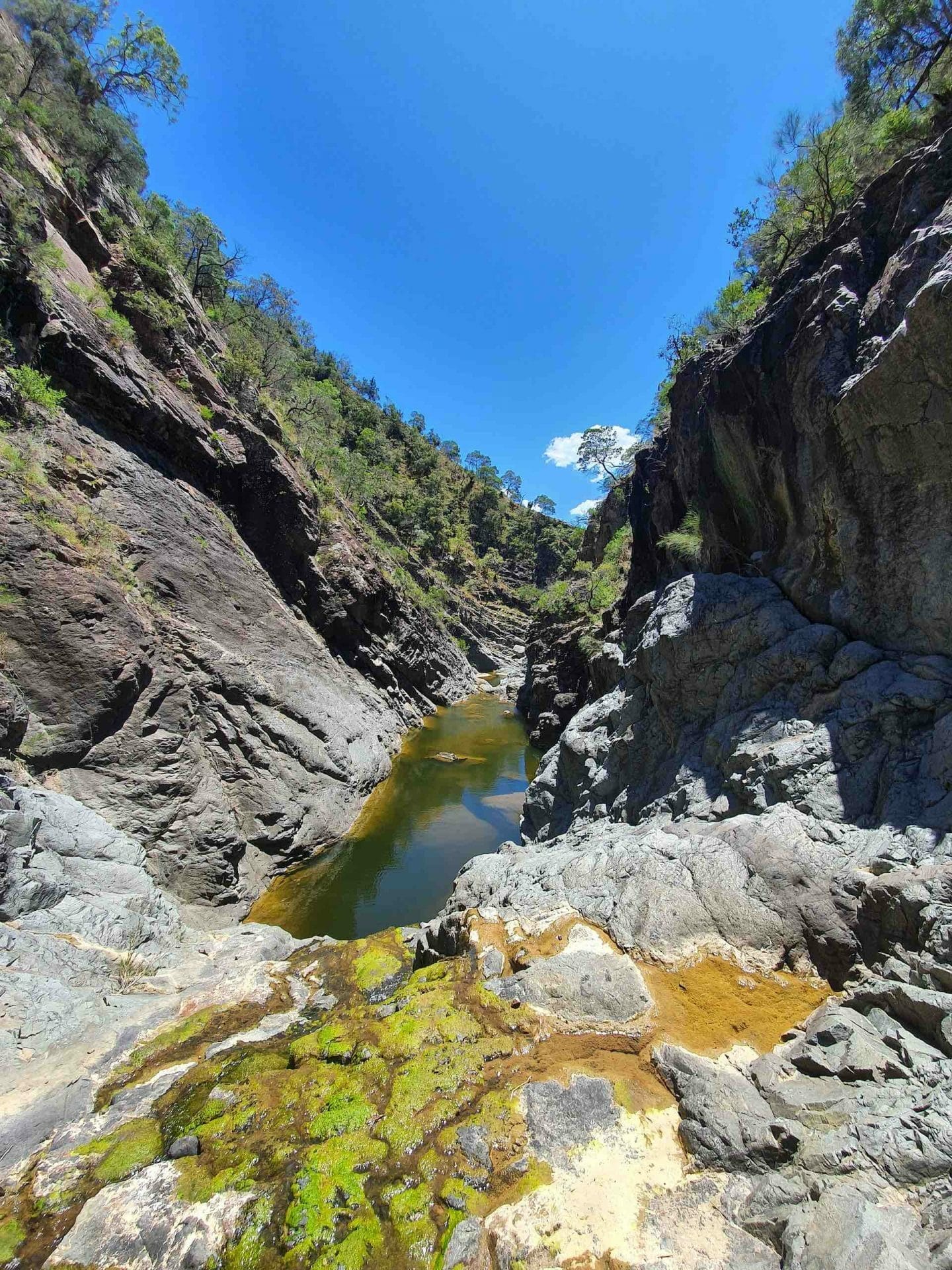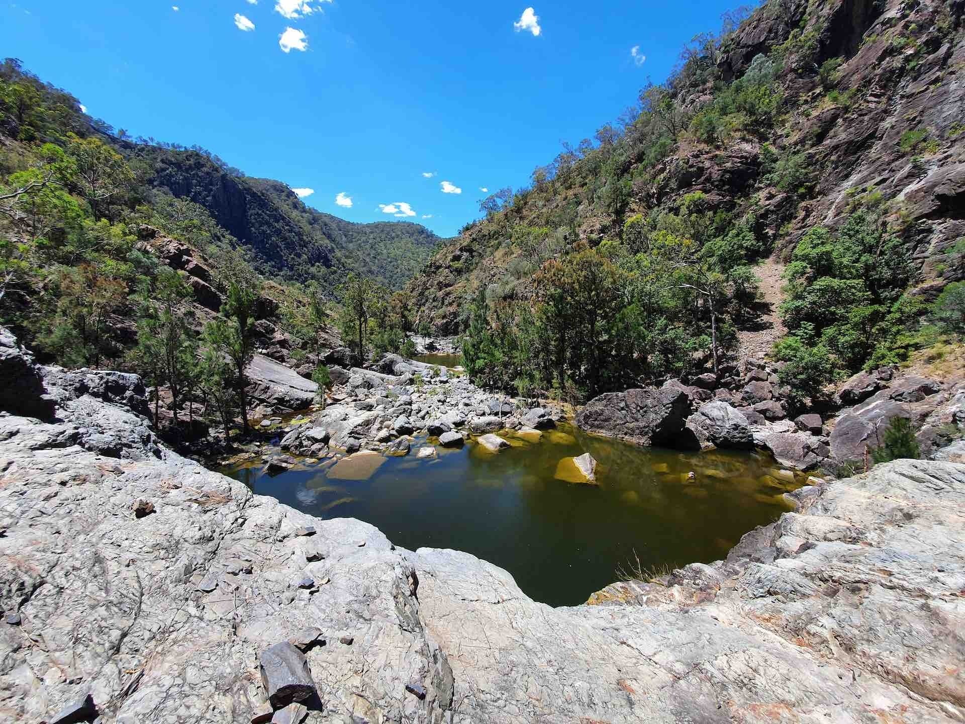 The second day, I’d mentally prepared for the whole situation. And after perching on a ledge 30 metres from the ground, sliding into a patch of water surrounded by sharp-looking rocks, and burning my palms on some giant boulders that took conducting heat much too seriously, I had no qualms about taking breaks on the hike out exactly when I felt like it.
