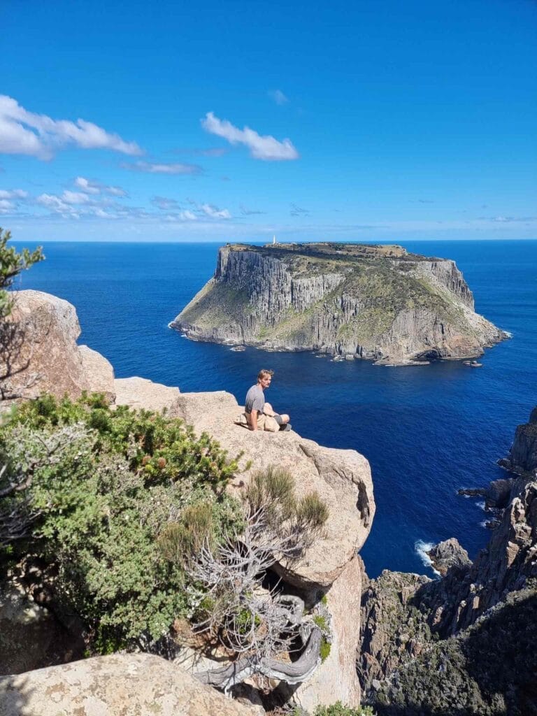 Eventually, we broke through the rainforest, glimpsed the ocean, and marvelled at the now distant Cape Pillar track we’d walked the day before.