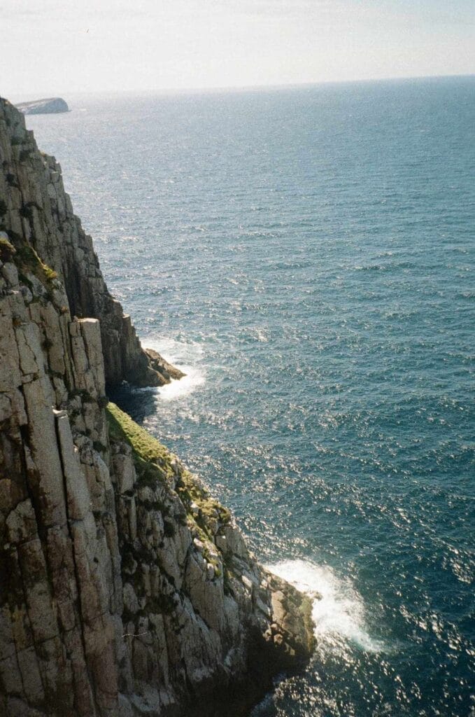 It was getting close to lunchtime when we reached the base of The Blade, another wonderfully named landmark. The Blade is a collection of stone pillars that rise steeply out of the ocean and overlook Tasman Island and the endless ocean beyond the lonely lighthouse situated there.