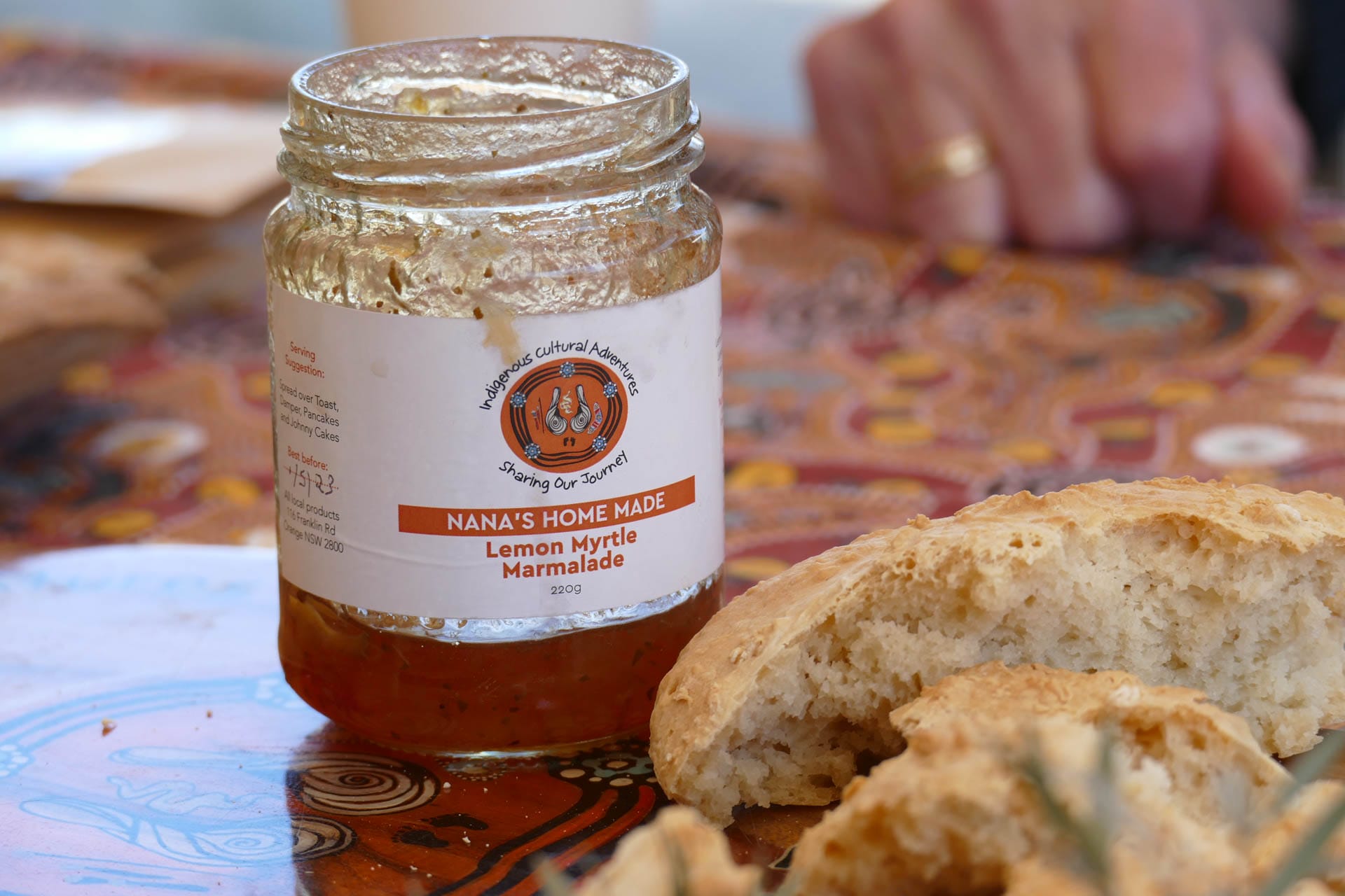 After our tour of the garden, we sat down for a bush tucker morning tea.  In between bites of homemade damper and lemon myrtle biscuits, Gerrald recounted stories of growing up with his Nana’s recipes and perfecting marmalades from native ingredients with his son.