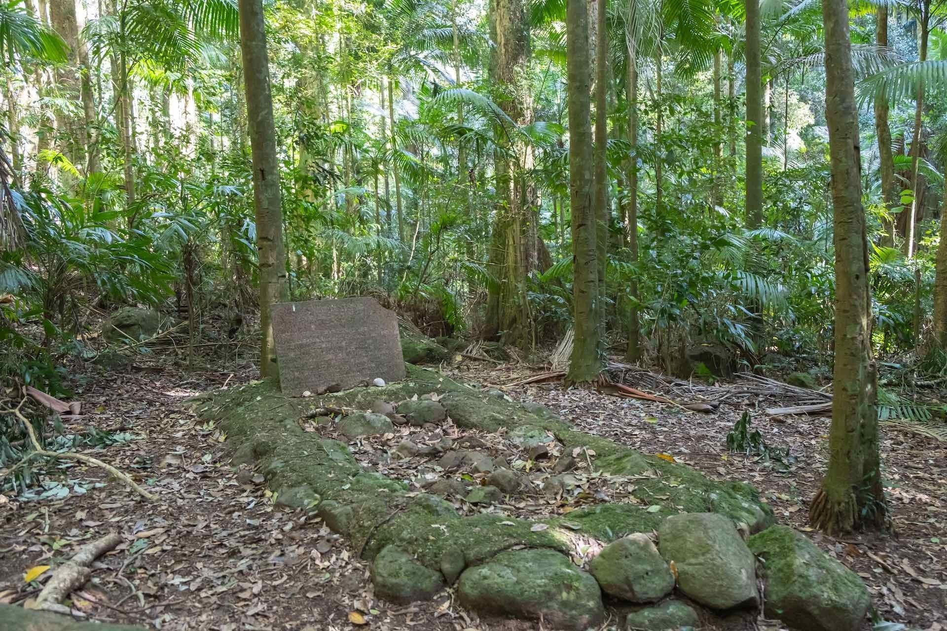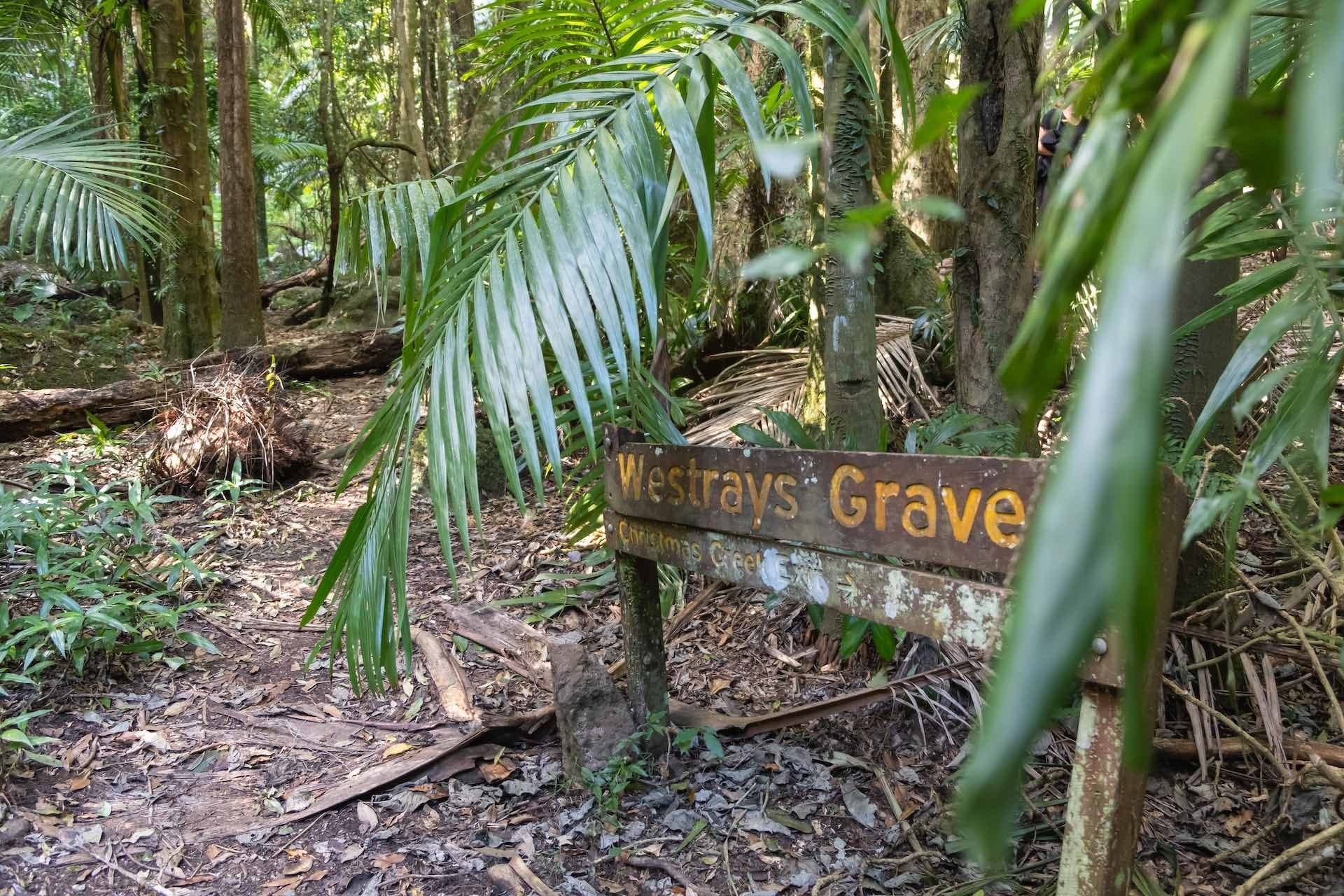 When the trail isn’t following Christmas Creek, it’s deviating through the rainforest where there are colossal strangler figs and ferns. After 4km or about an hour of solid walking, there’s a small clearing which is the historical site of Westray’s Grave, where Jim Westray is buried following the Stinson plane crash in 1937