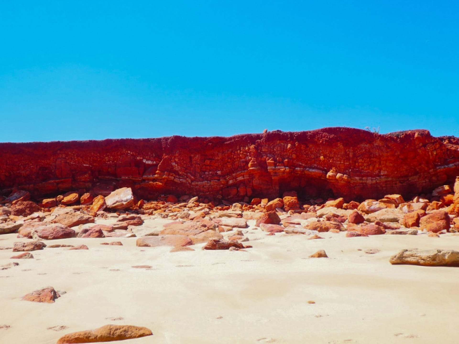 The yanniyarri/red cliffs in this area run all the way to dugal/Flat Rock in the north, before the lurujarri/coastal dunes begin again. The word dugal means red ochre, which is abundant in this area and what the Flat Rock area is named after. We also passed through lardik/freshwater mangrove, garnboor/freshwater paperbark, and gunuru/white gum trees.