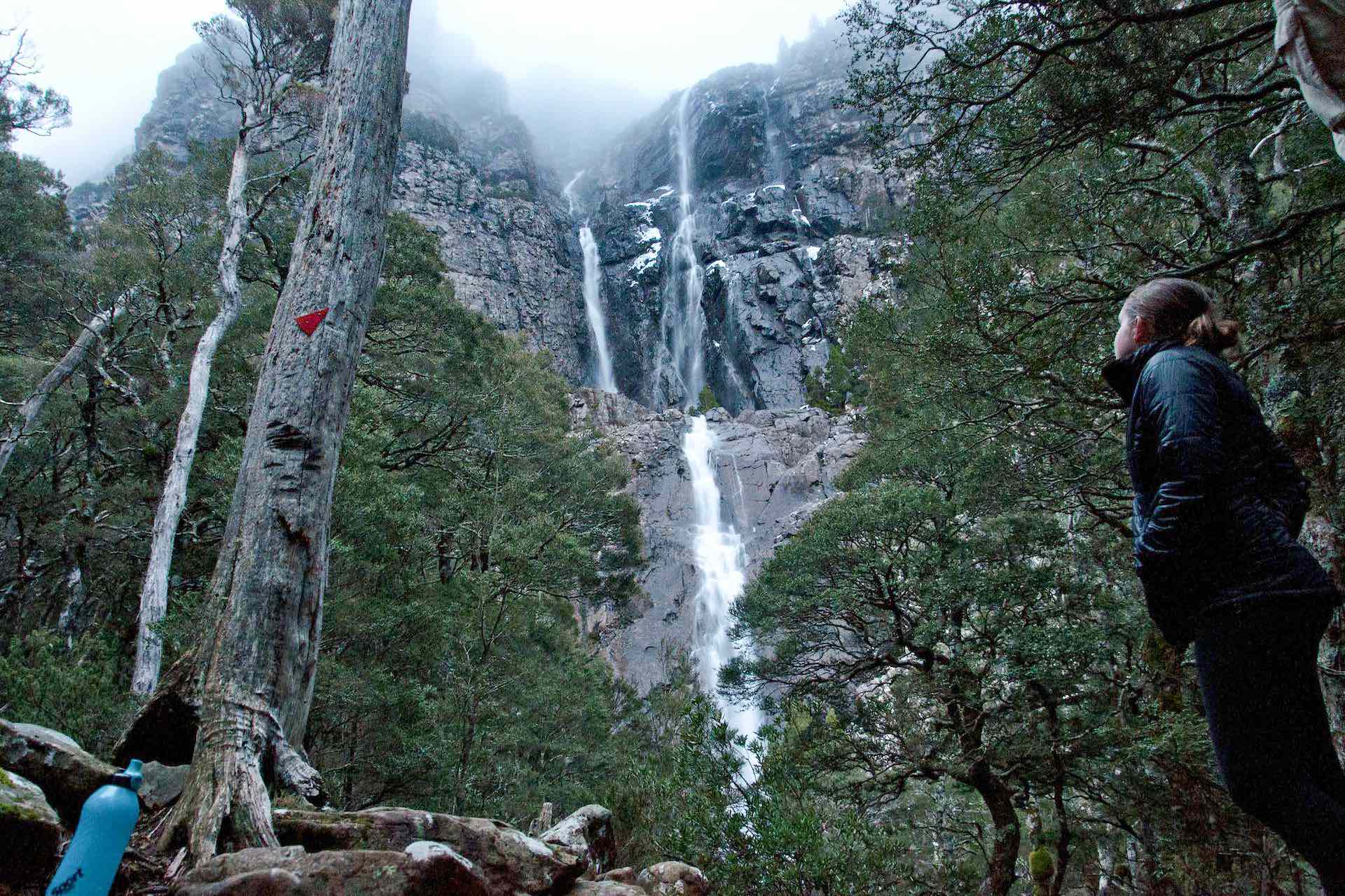 The Split Rock Track provides everything Tasmania has to offer, bouldering through a scree field, walking under overhanging cliffs, and even more impressive waterfalls – including the always exciting opportunity to get behind one.