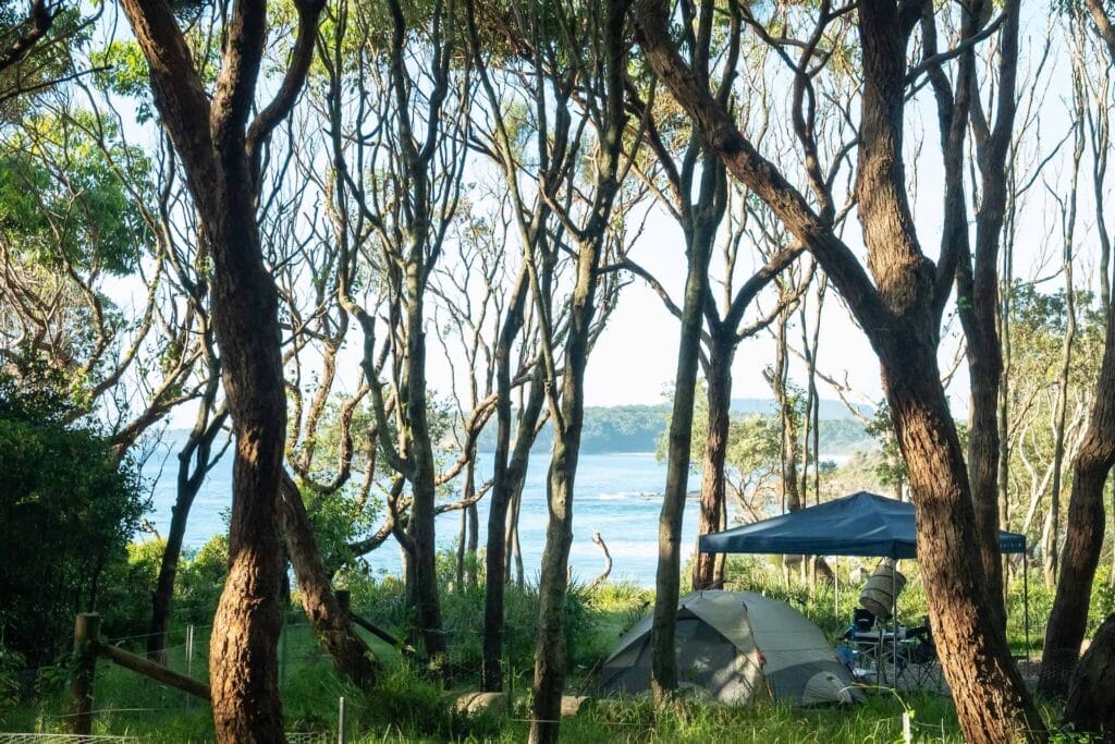 • Meroo Head Campground – Larger campground, a short walk from car park to the campsites, tents only