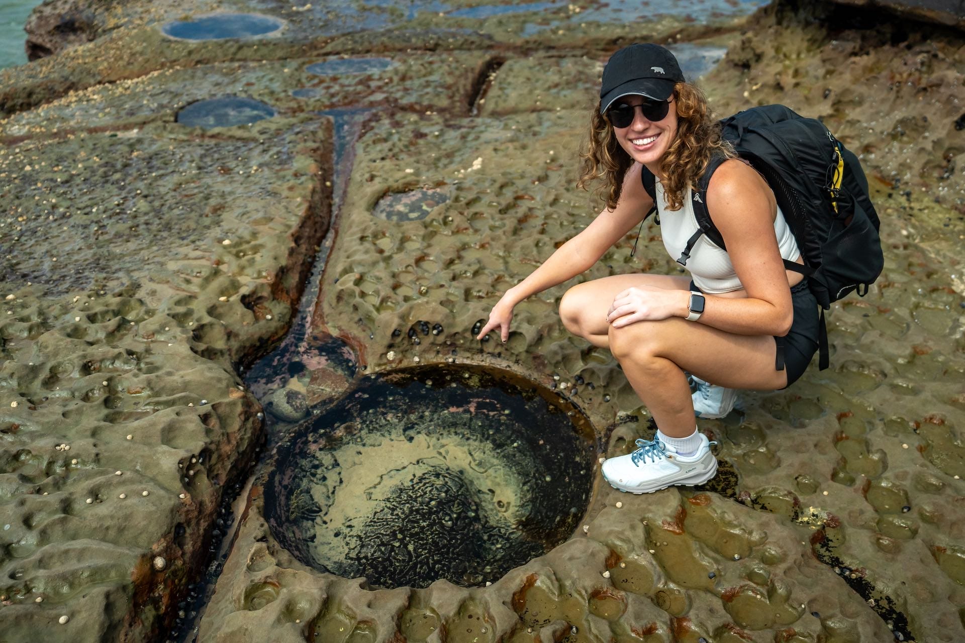 Walking further around the point revealed some slightly calmer waters and plenty of rock pools to explore. Aside from a lone surfer navigating the waves and a small family exploring the rock pools, we had the place to ourselves. The incredible sights and moments of serenity made the journey absolutely worth it.