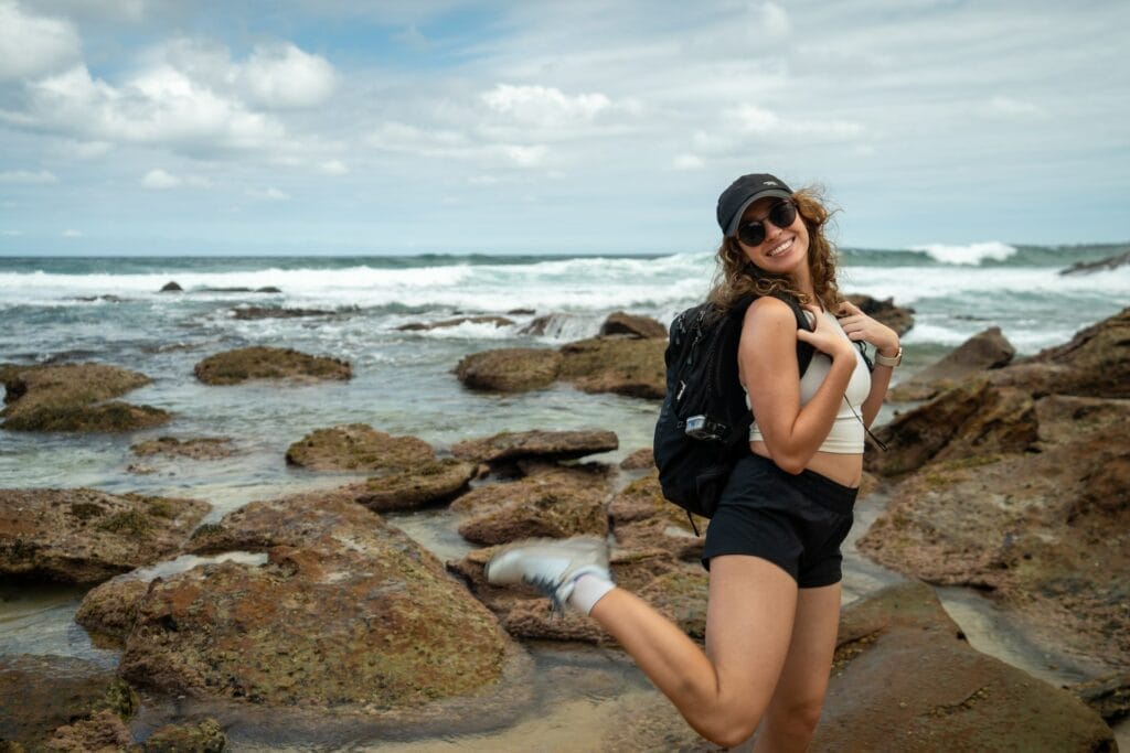 The Oboz Katabatic hiking shoes provide the much-needed combo of agility and support for navigating this type of ever-changing terrain, making it the perfect shoe for hiking around Meroo. We found them so comfy that they ended up becoming the only shoes we wore all weekend – for every trail we hiked (and even those late-night stumbles to the bathroom with a head torch).