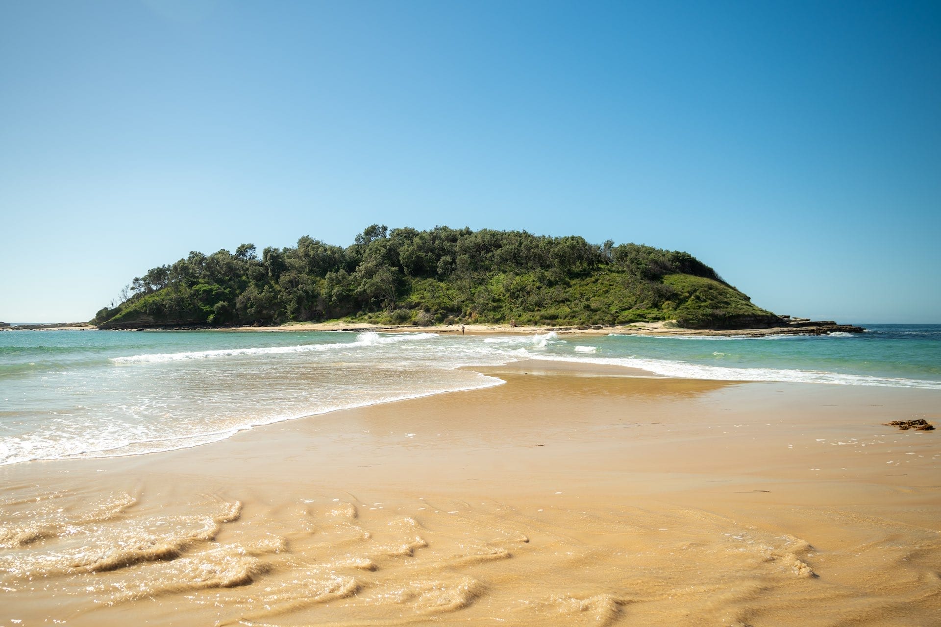 The beach at Crampton Island was my favourite spot over the whole weekend. The island lies at the point of two connecting beaches – Tabourie Beach and Wairo Beach. The waves from these two beaches intersect at the sand bar where you can (carefully) walk out to Crampton Island and explore the tiny charming place.