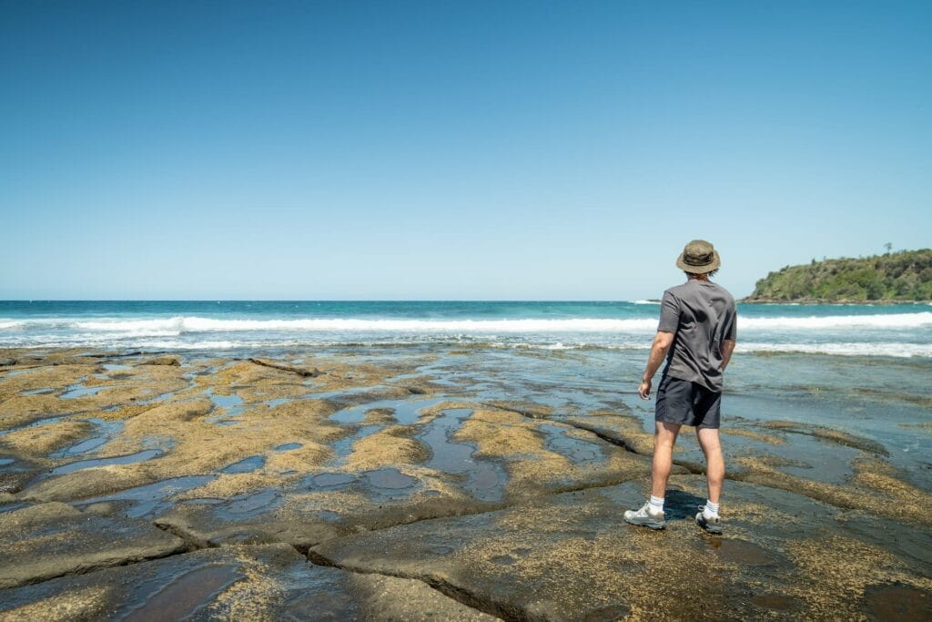 The short trail around Dolphin Point extends on from the previous hike (or begins at Burrill Lake car park) and involves a lot of rock scrambling to explore. While it isn’t overly challenging, good shoes are a must for navigating the sharp and often slippery rocks.