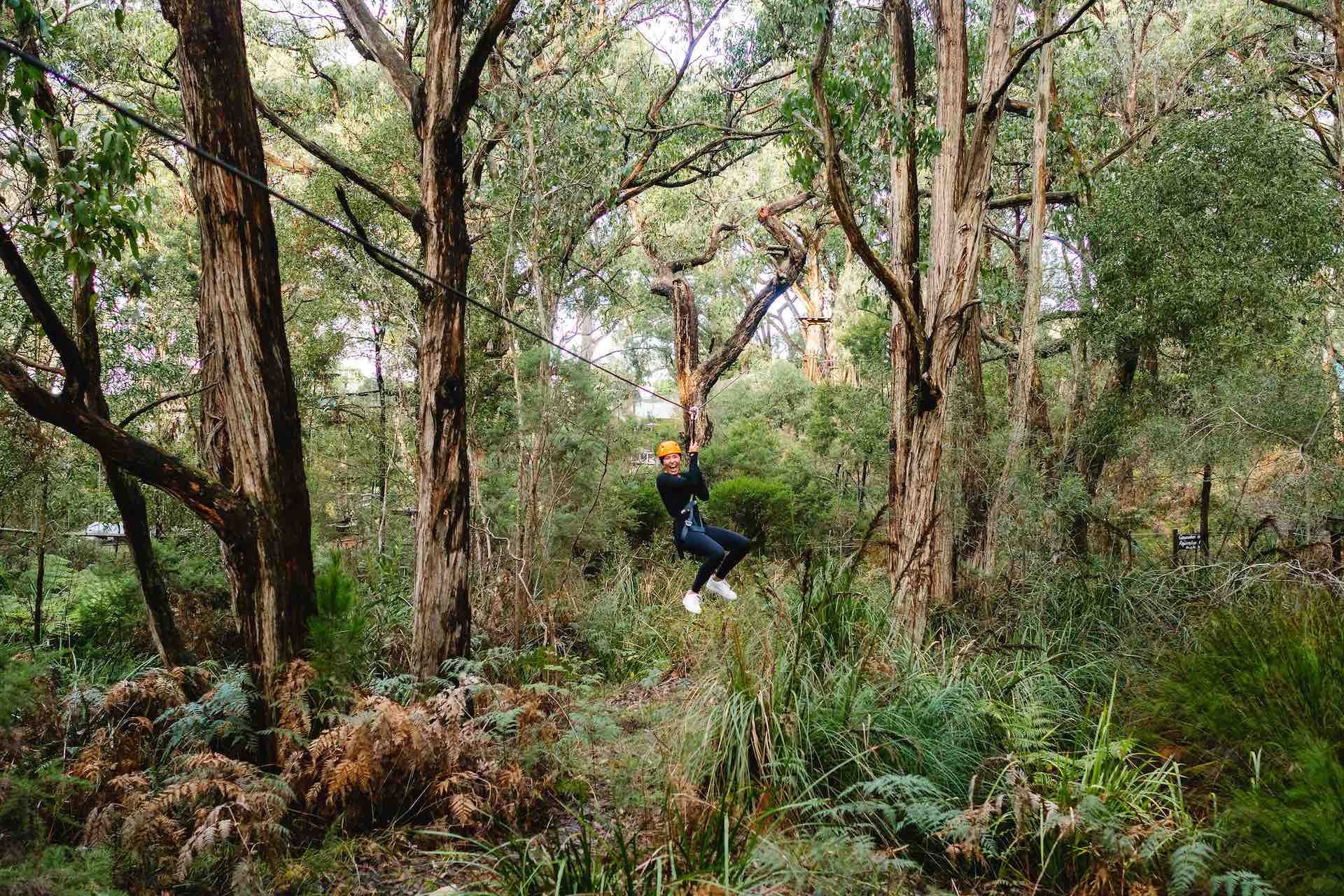 If you’ve seen the Mornington Peninsula on foot, wheels, and from the ocean and you’re still looking for more, there’s only one thing left to do… take to the trees. Enchanted Adventures have a tree surfing adventure with more than 50 aerial obstacles and zip lines.