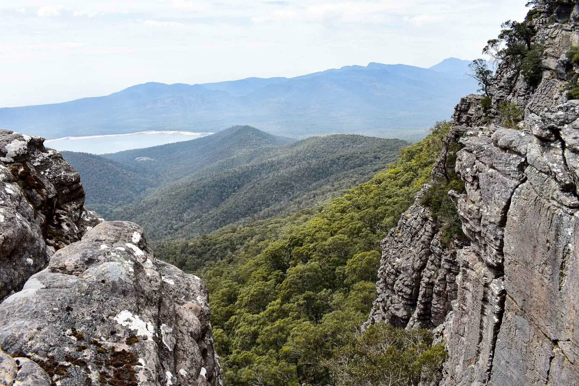The path zig-zags up an open rock face and a series of boulders surrounded by scrubby heathland, before tracing along the ridgeline of the Serra Ranges all the way up to Mount Rosea. It’s strenuous in places but consistently rewarding with views across all angles of the national park. Pagoda-like rocks pop up around you, while peppermint gums twist along the track. And not another person in sight!