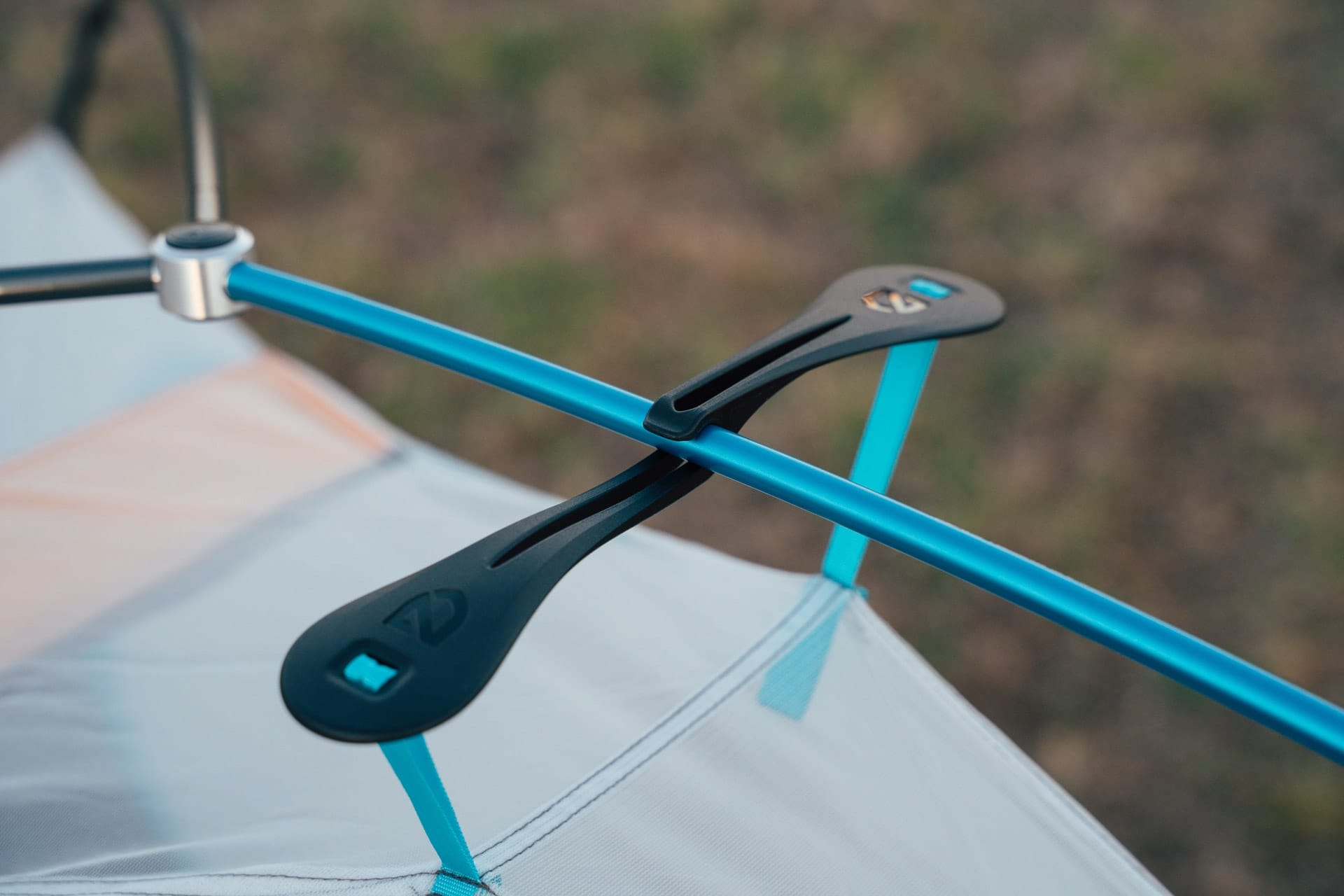 The flysheet clips in easily to the underside of the poles. In typical NEMO Equipment style, it’s colour-coordinated to make for an easy set-up. Once on, the flysheet provides double-wall protection but it’s thin and light-coloured and isn’t much of a light blocker, so be prepared for a less-than-dark sleep.