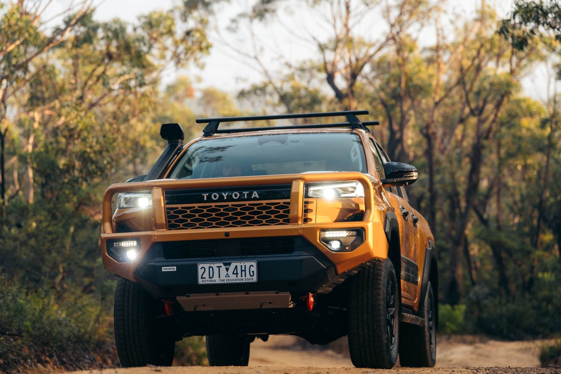 It comes colour-matched to the car, with Toyota lettering in line with the lights. Our model came with a colour-matched Toyota premium steel bullbar too, and in this spec I reckon it looks positively mean.