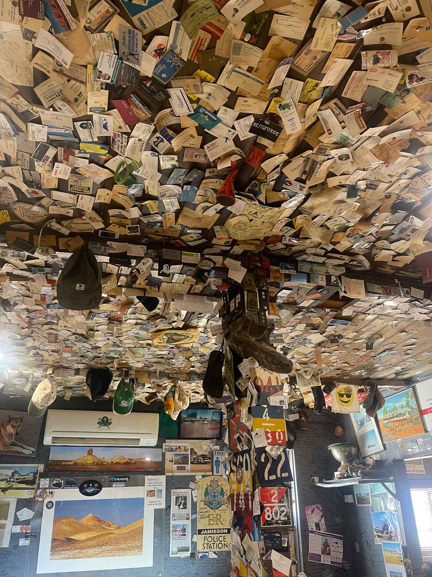 When we arrived at William Creek we had to stop at William Creek Hotel. Once you drive past you’ll know exactly what I mean. This little town is located in the middle of Outback South Australia and the pub is one of only two businesses in town. We stopped in for a beer and a yarn with the bartender and to check out all the unique stickers, photographs, and signage inside.