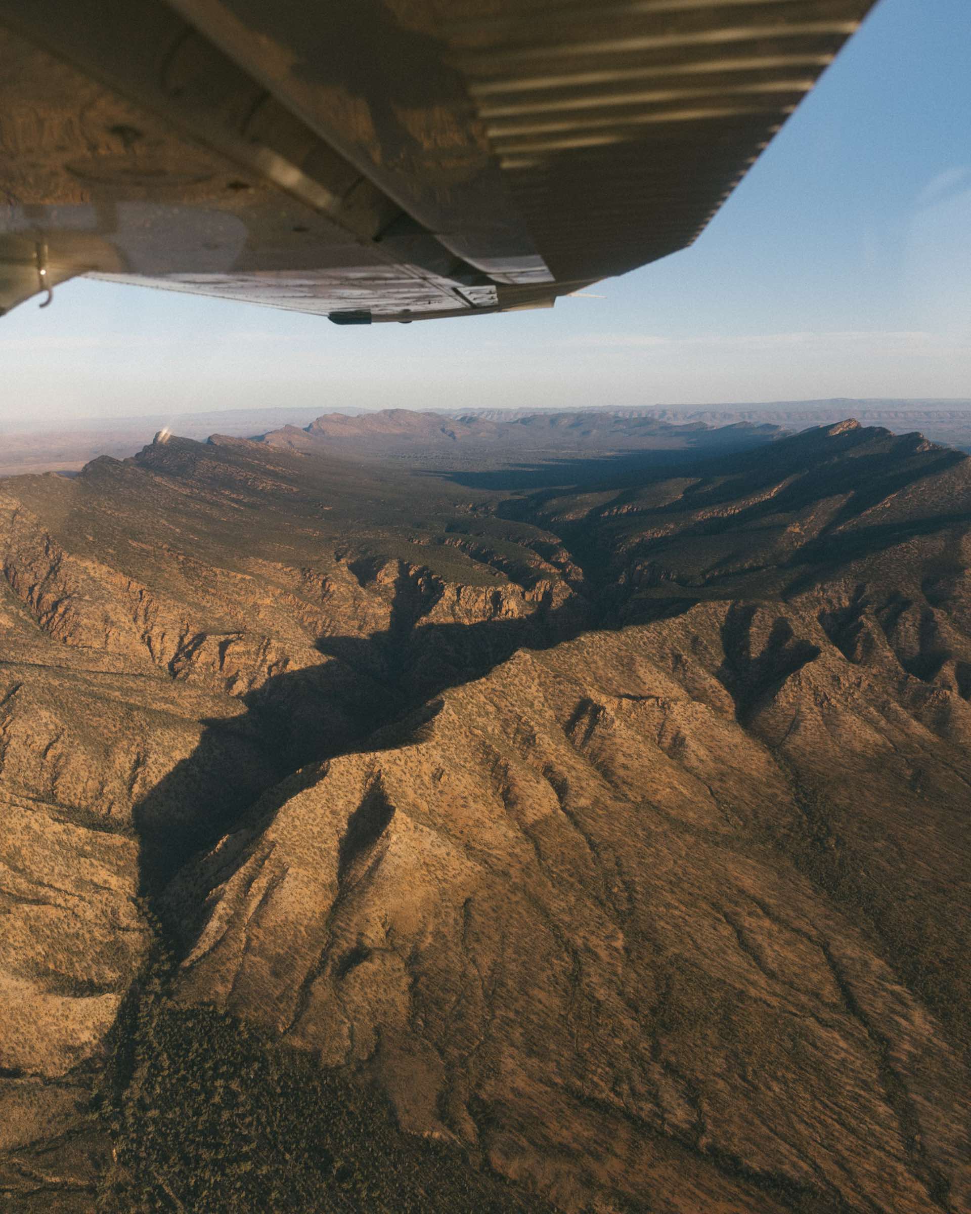 From the air, you can truly appreciate the natural amphitheatre of Ikara Wilpena Pound while capturing unique angles and textures. It also shows how vast the region is, as the red dirt stretches to the horizon.
