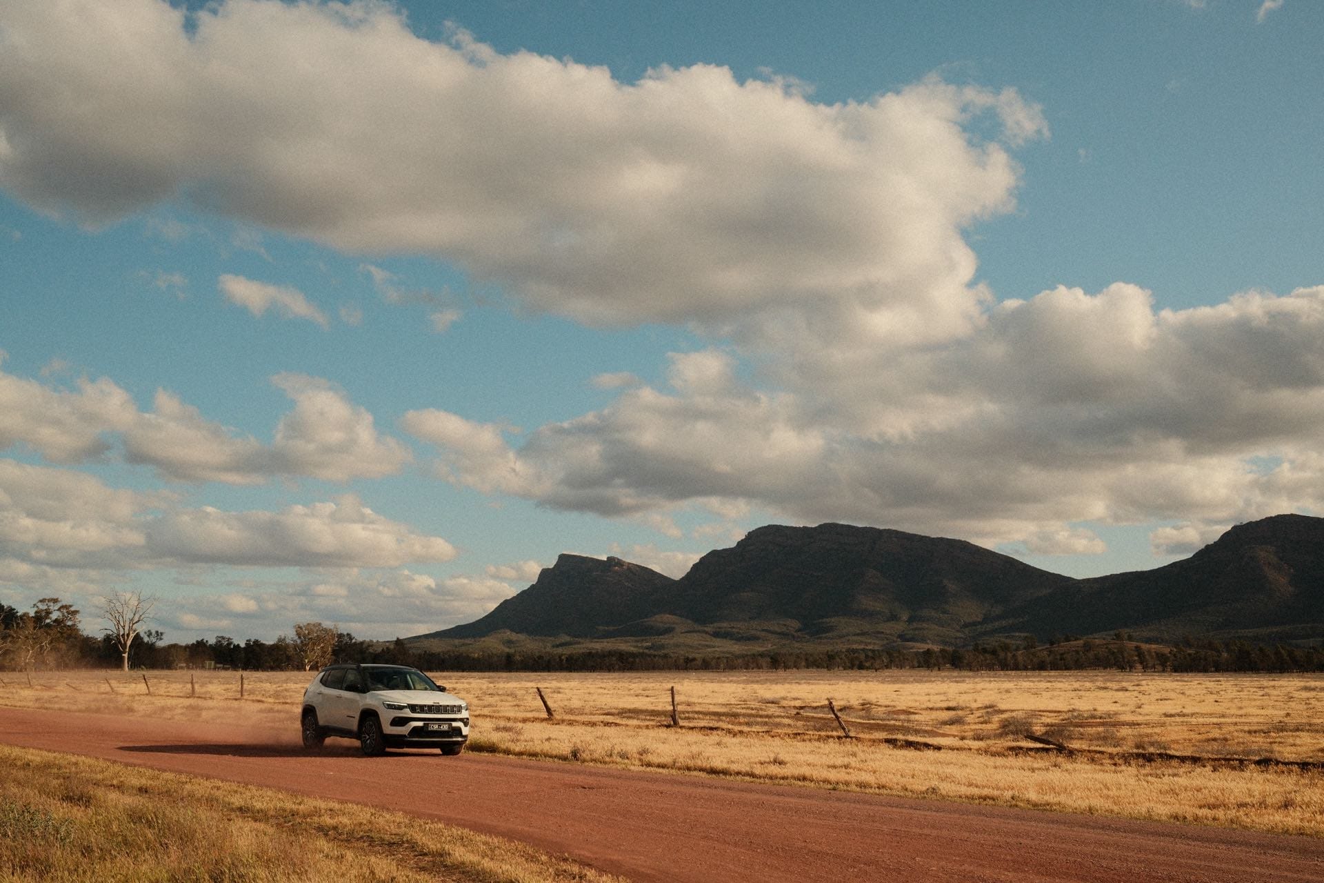 I’ve been visiting the Flinders Ranges annually since my first long weekend trip in 2020 and have taken both campervans and 4WDs. This time we loaded up the Jeep Compass which had plenty of room for our tent, esky, and other car camping essentials to pitch up at Wilpena Pound Resort – a great central location for a short trip to the Flinders Ranges. As we threw adaptive cruise control on, sunk into the comfy leather seats and blasted some road trip tunes through the Apple Car Play, it felt like no time at all before we were amongst red dirt, winding through the ranges.