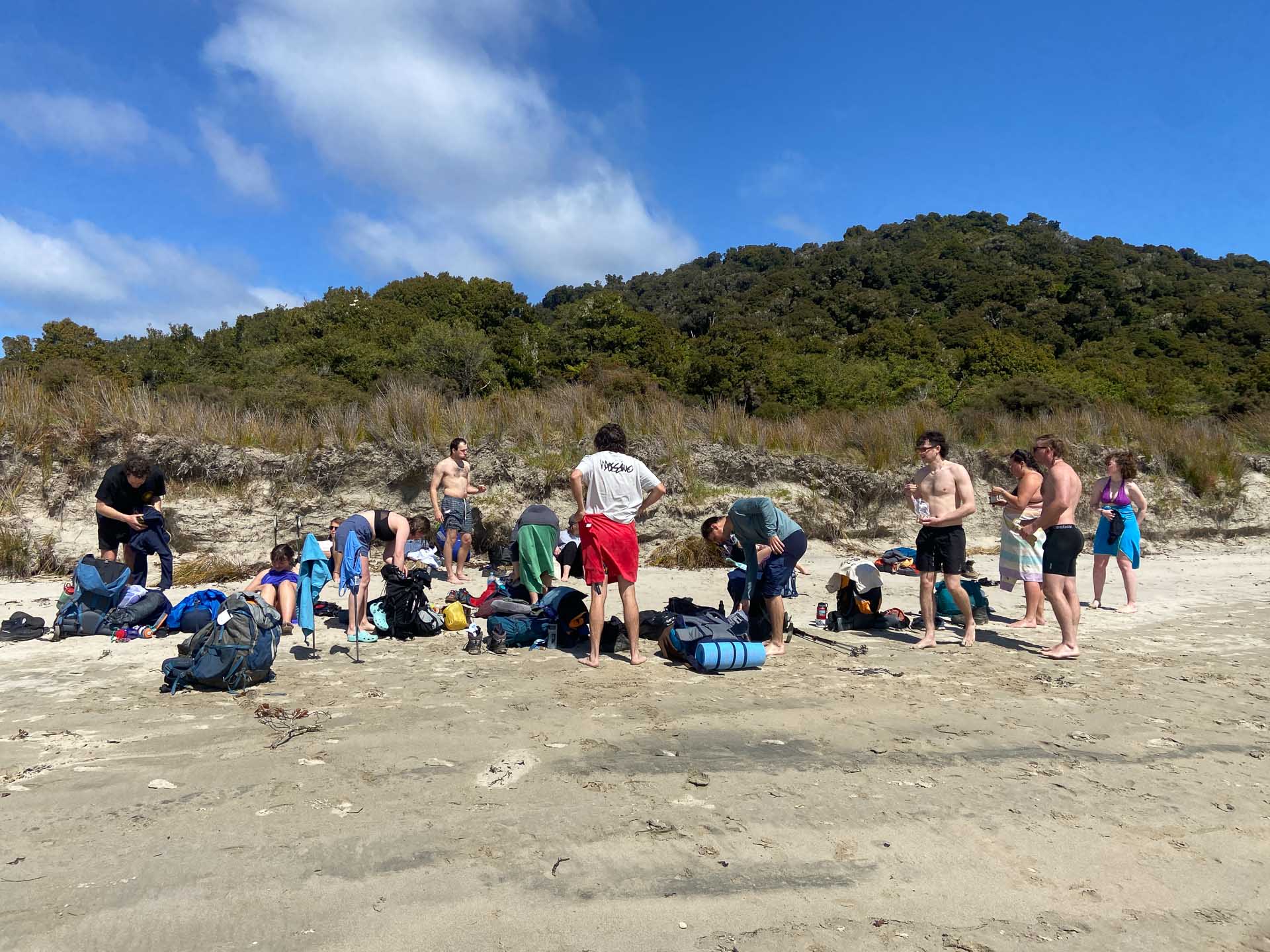 There are a number of spots to stay along the Rakiura Track, with both camping or hut options on offer. We had a huge group hiking together with varying amounts of camping gear, so we stayed in a combination of huts and campsites.
