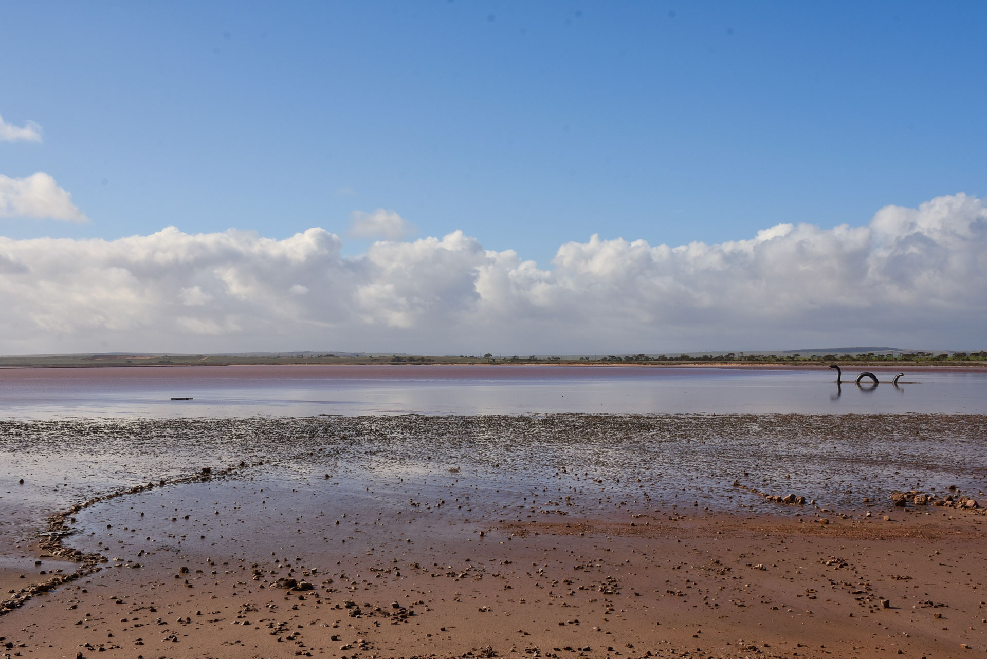 We arrived just as the sun started stretching to its midday peak. For Lake Bumbunga, this was probably just a bit too late for the blossoming pink sheen on the salt pans. It had also rained during the week which meant that the salt crust lake edge was covered by a gentle layer of still water.