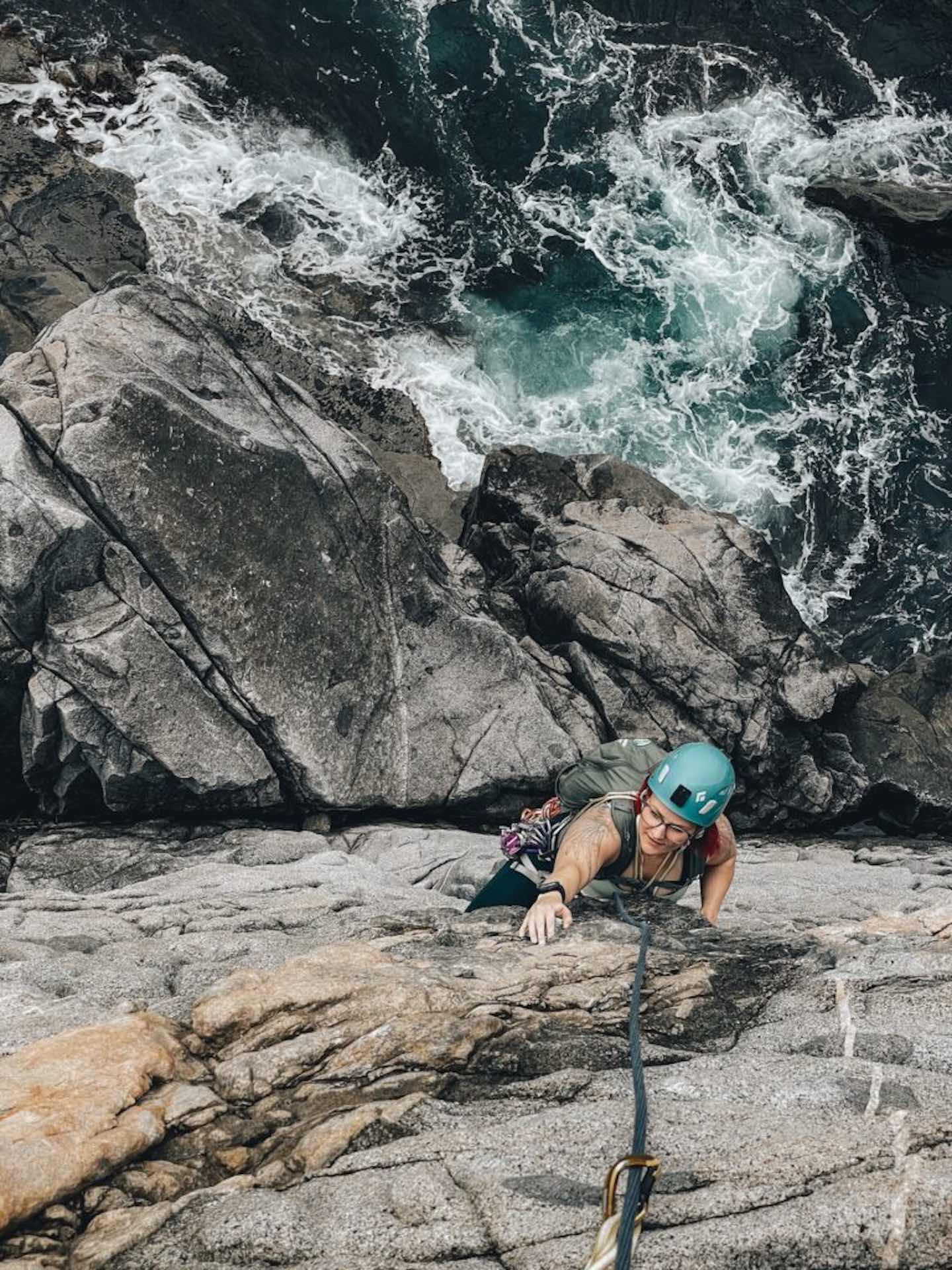 Scrambling to the bottom of the main wall is a bit of an adventure in itself, then you’re treated to world-class sea cliff climbing on granite. Apline (Grade 12) is an iconic climb that traverses the wall and is a must-do!