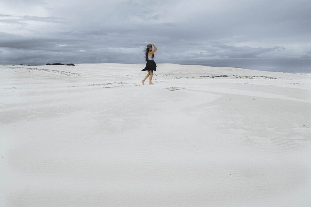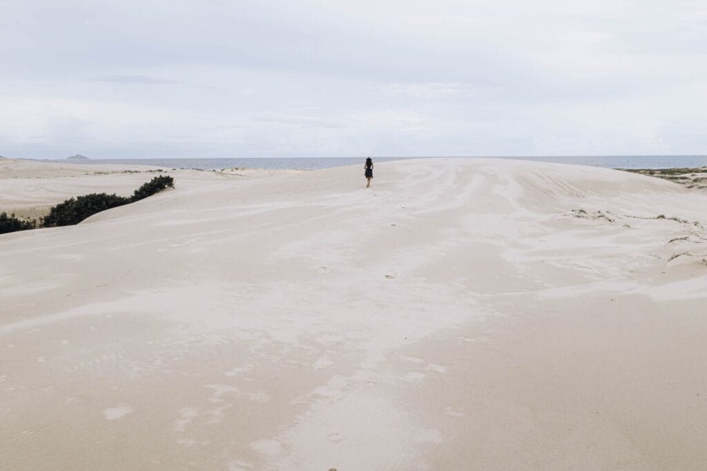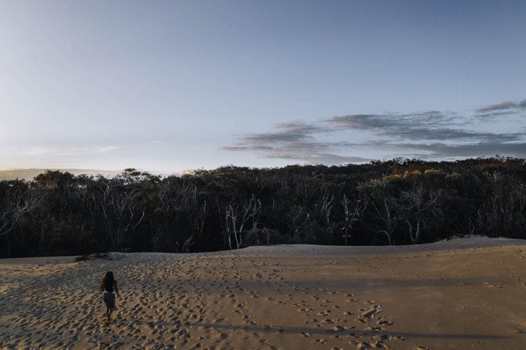 I loved walking the sand dunes that are accessible directly from the campground, but one thing to note is that everything can look the same, so my tip is to use the compass app on your phone to find your bearings and take a screenshot of them. This way you know exactly where you need go to find your way back without question. If you don’t have your phone, keep your eye on your access point. The worst that’ll happen is you’ll come out on another track and have a longer walk back to camp.