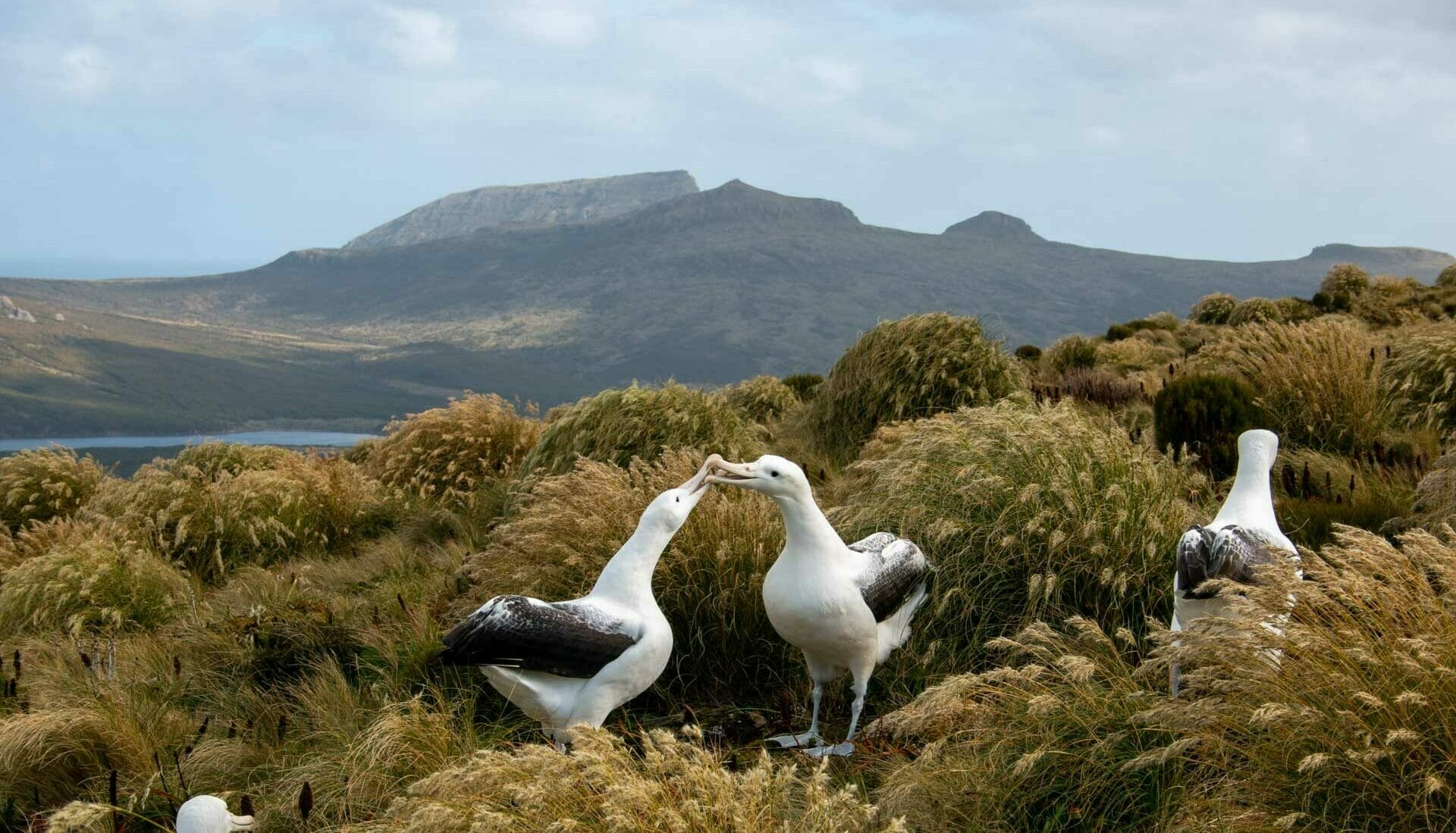 We returned the next day – the weather Gods smiling on us a little more, their gift of blue skies giving us hours to sit in the grass as giant albatross ambled past us, dancing their courting dances, preening with their partners, or watchfully sitting on their nests.