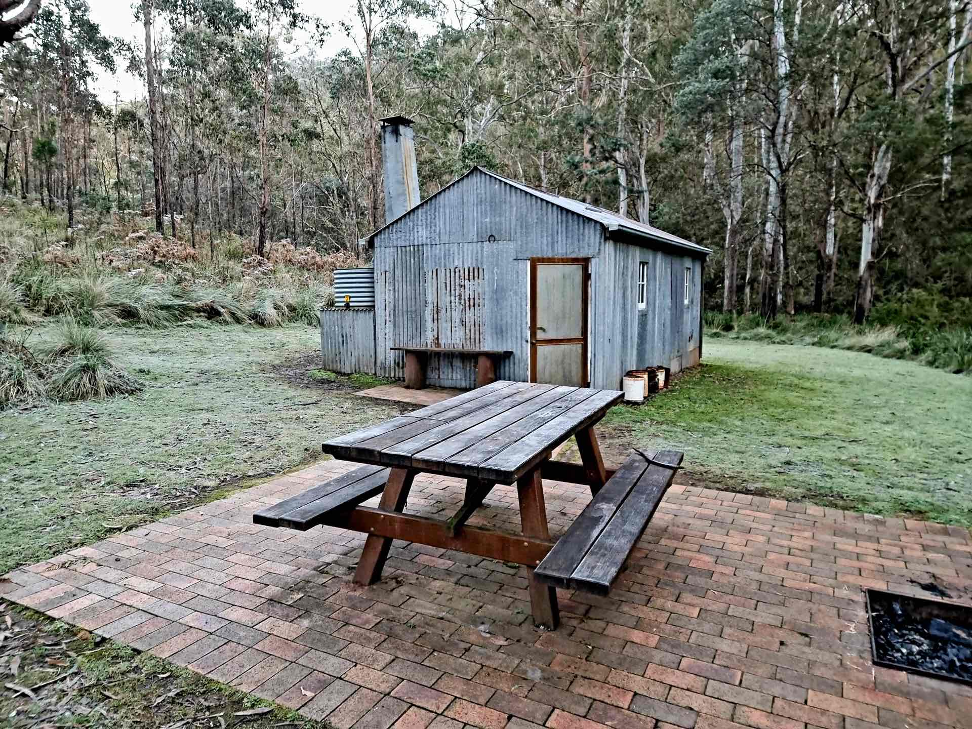 Colwell Hut was situated in a pleasant, open grassed area surrounded by eucalyptus, and was very similar to Birds Nest, as the fireplace produced zero heat. Only four people could sleep in the hut, while the other two slept in the well-made lean-to outside.