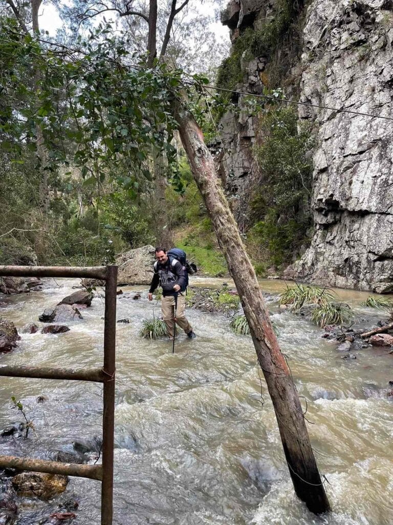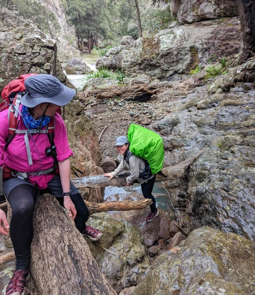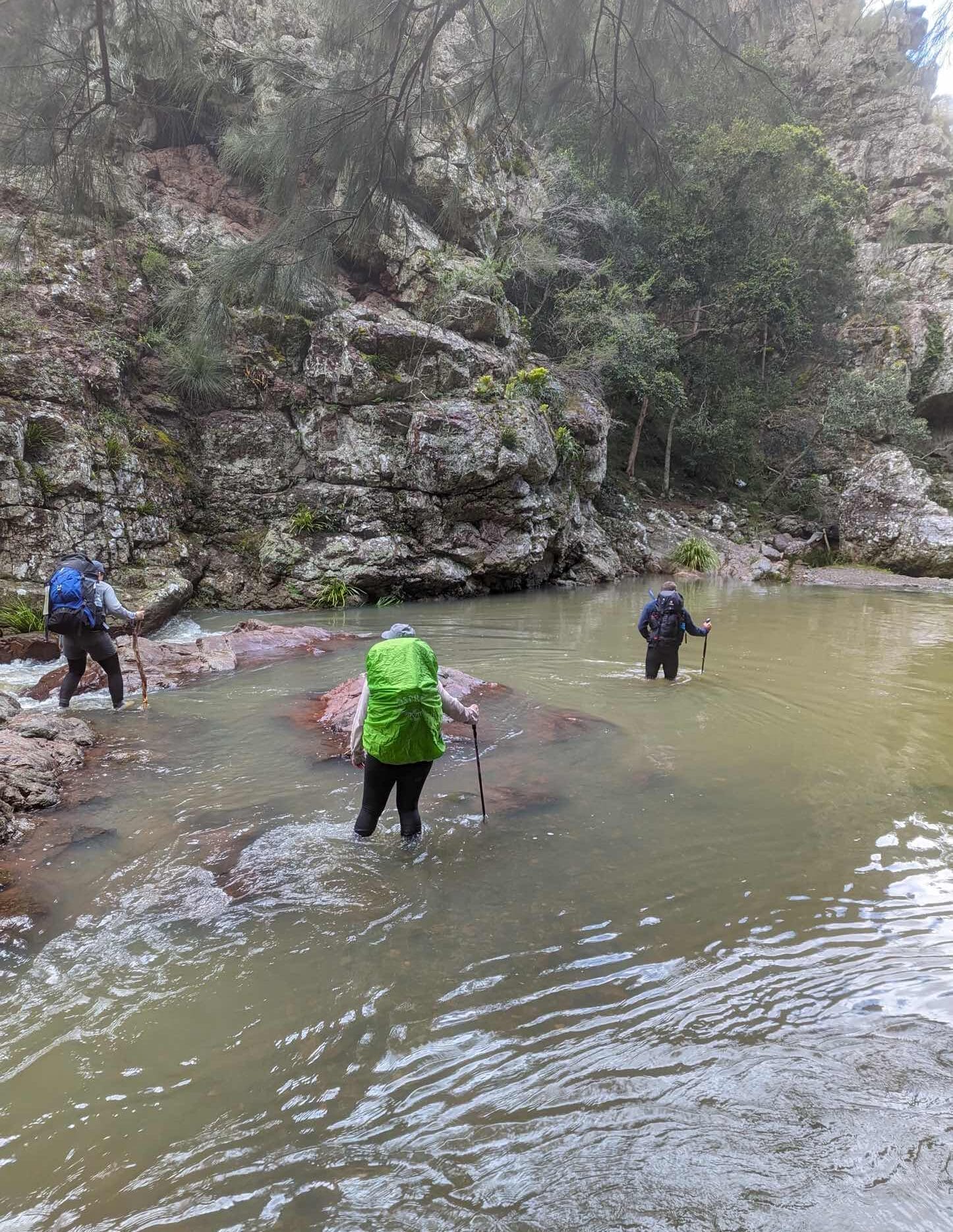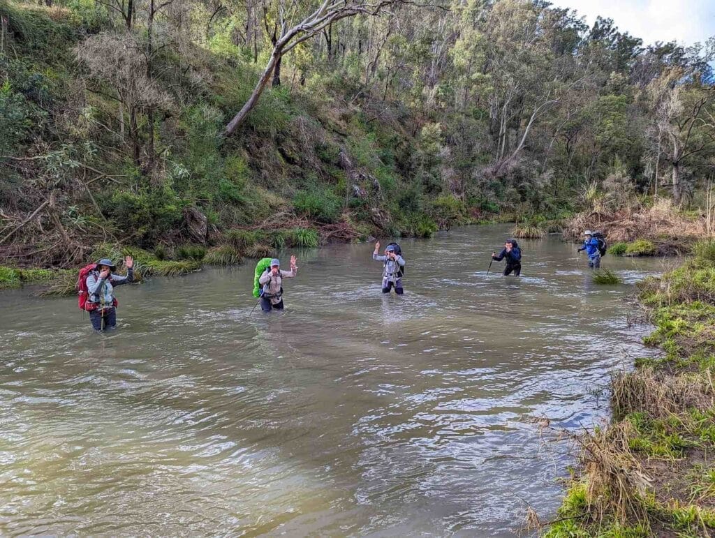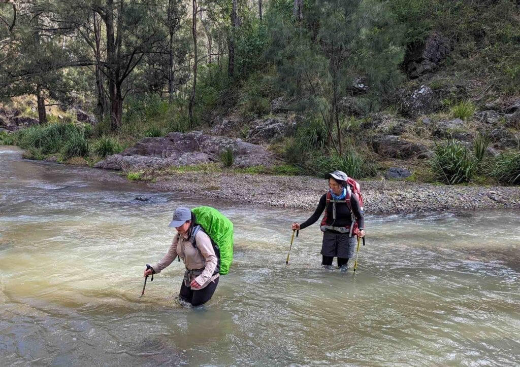 The Green Gully Track is NSW's Only Official Hut-to-Hut Multi-Day Hike, Emma Griffiths, creek crossing, river, hiking poles