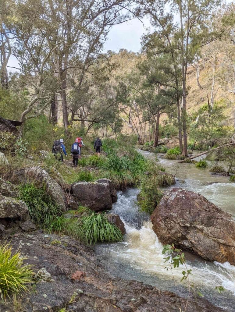 The creek crossings were brown, moving fast, and one almost came up to my waist height (the shortest of the bunch), but didn’t tick all the boxes for taking the alternate route, so we unanimously decided to continue following Green Gully Creek upstream, helping each other cross when needed.