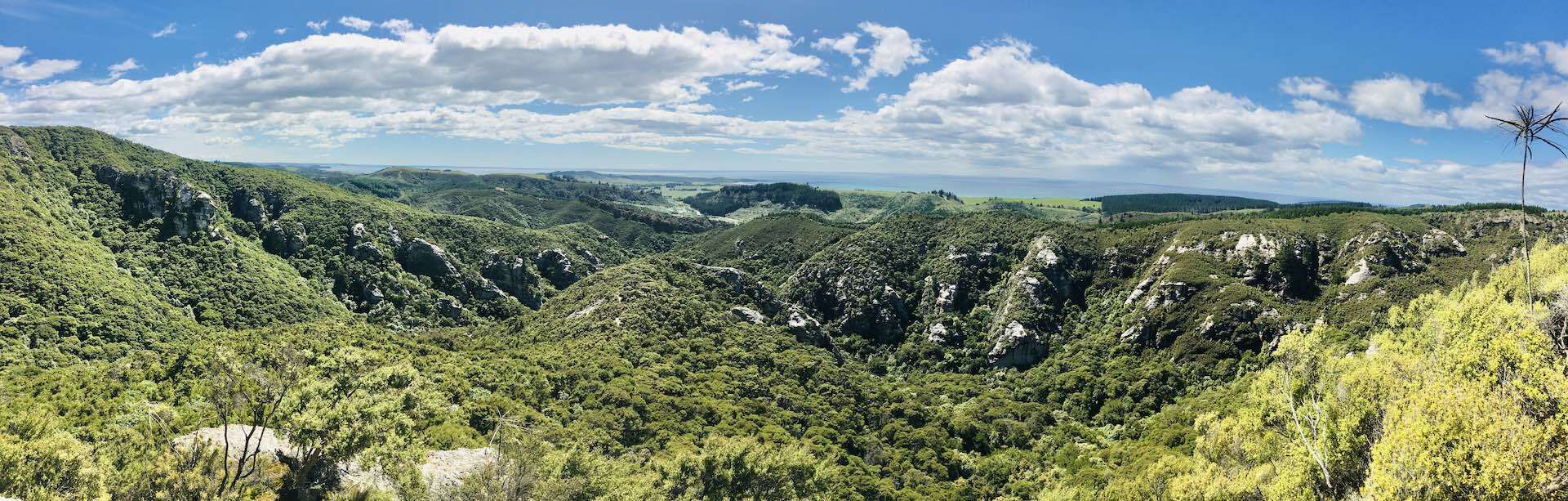 The mud started to dry out as the trees thinned into the Kanuka forest and the sun hit the ground. Not too long after that I popped out at the summit. What a view! I hadn’t done any photographic research of the hike so the lookout was breathtaking to see for the first time.